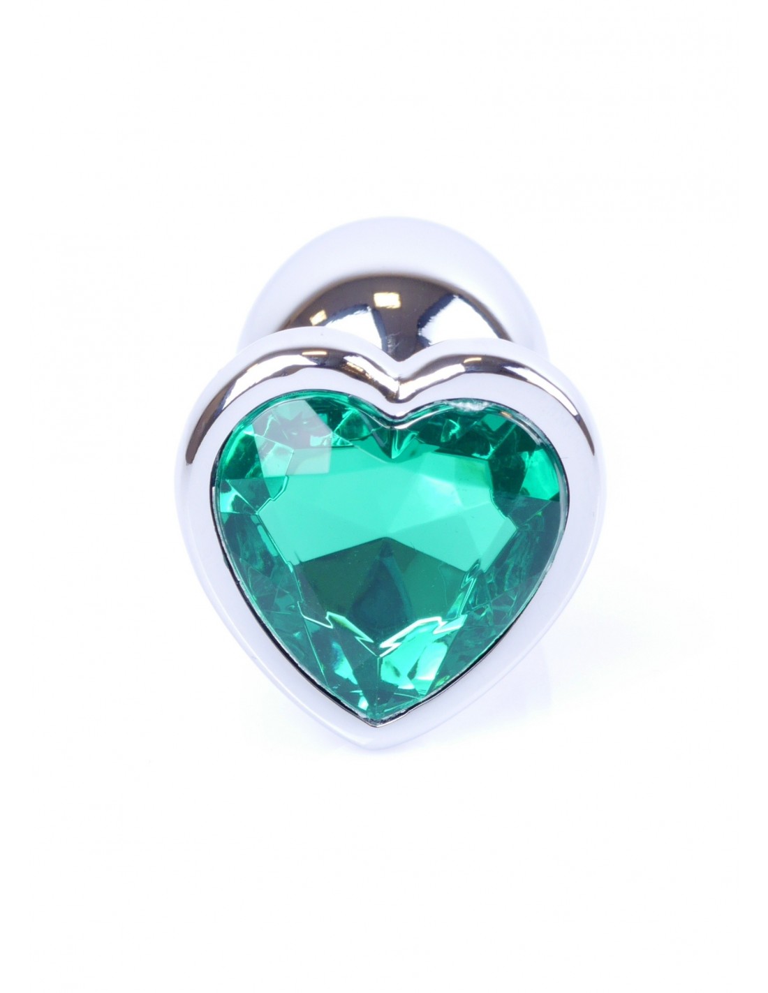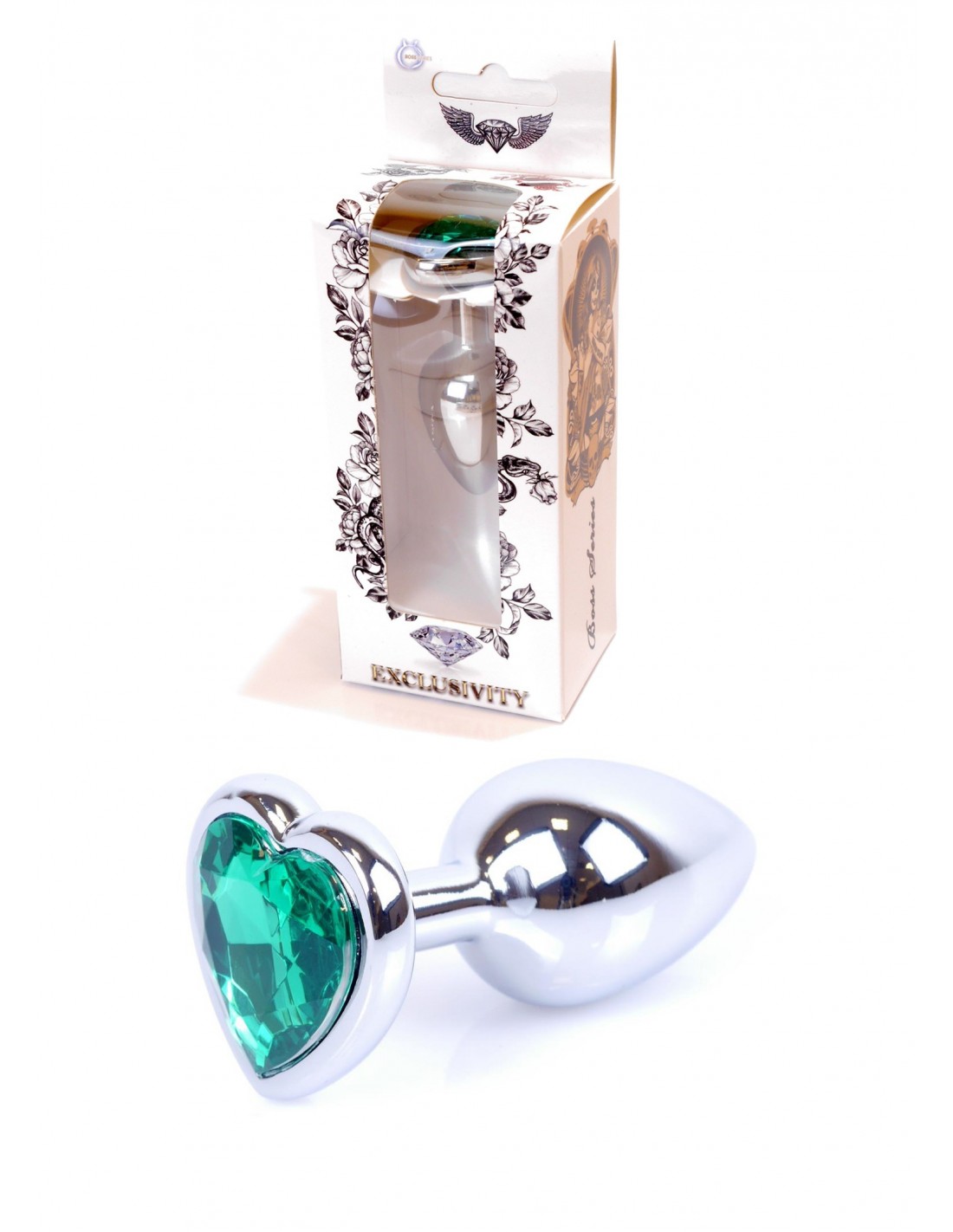 Mały Stalowy Korek Analny z Zielonym Serduszkiem Exclusivity - Srebrny lub Złoty