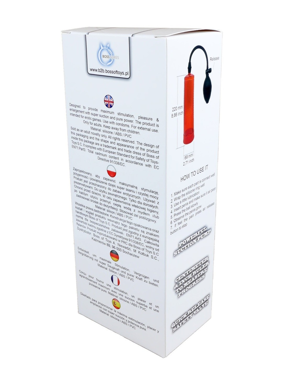 Pompka próżniowa do penisa w kolorze czerwonym, przeznaczona dla mężczyzn, którzy nie boją się nowych wyzwań, kochają przygody oraz pragną niezapomnianych doznań.