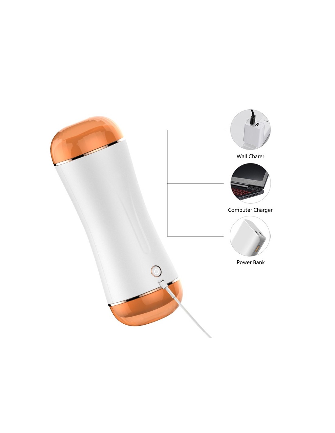 Masturbator posiada wydajny akumulator, który z łatwością naładujesz za pomocą kabelka USB dołączonego do zestawu.