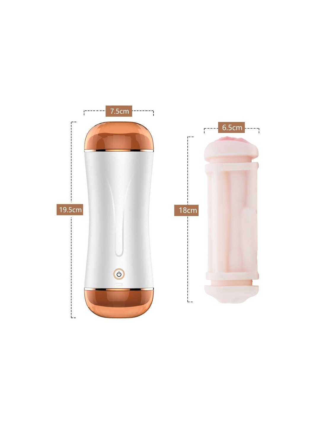 Podwójny, profesjonalny masturbator przeznaczony dla mężczyzn, którzy wiedzą, czego chcą od życia. Do dyspozycji użytkownik dostaje dwie dziurki, z jednej strony miękkie, ponętne usta, z drugiej strony natomiast znajduje się ciasna, piękna szparka. Sam zdecyduj, na co akurat masz dzisiaj ochotę.