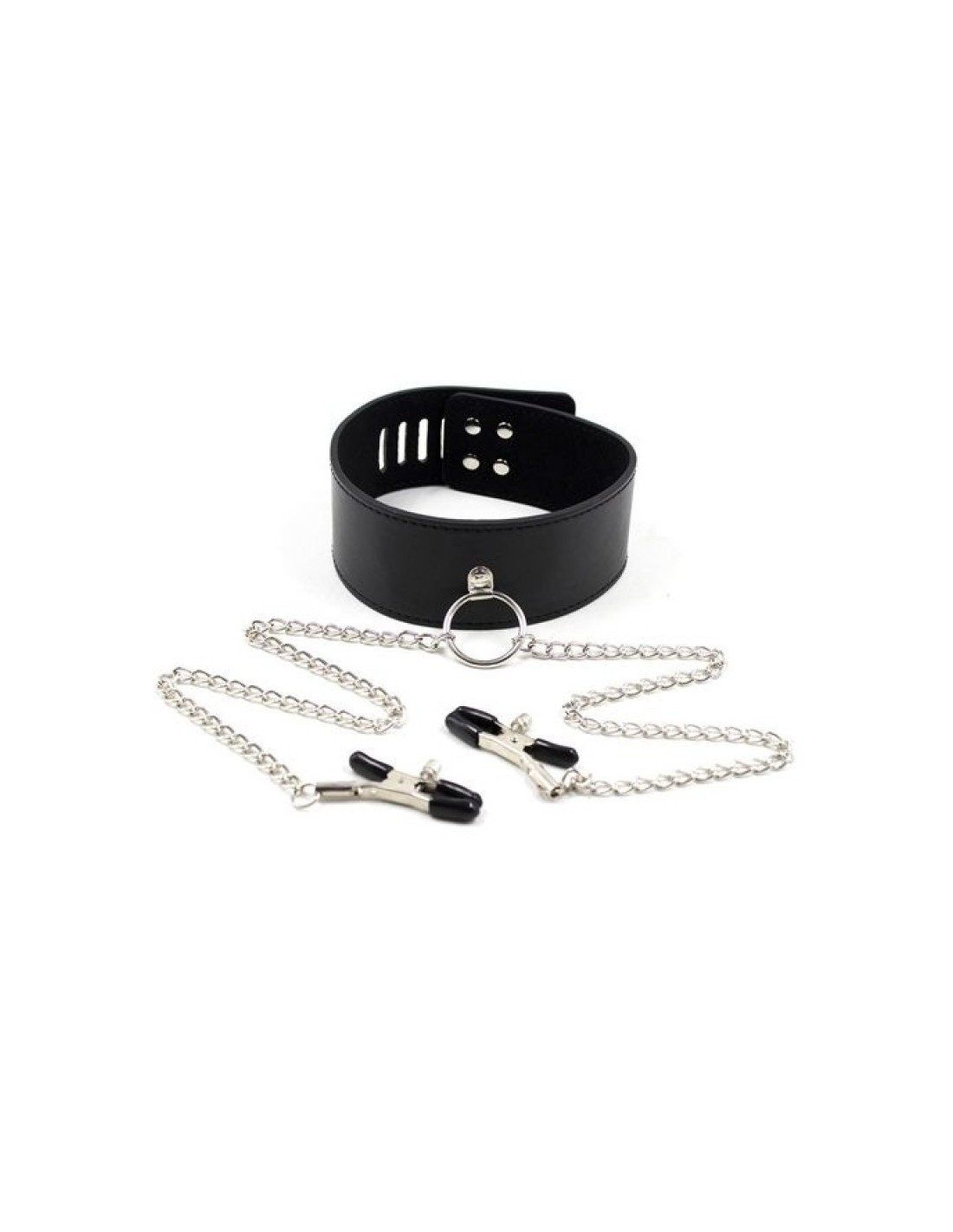 Obrożą z klipsami na sutki Collare con morsetti per capezzoli Leash nipple black