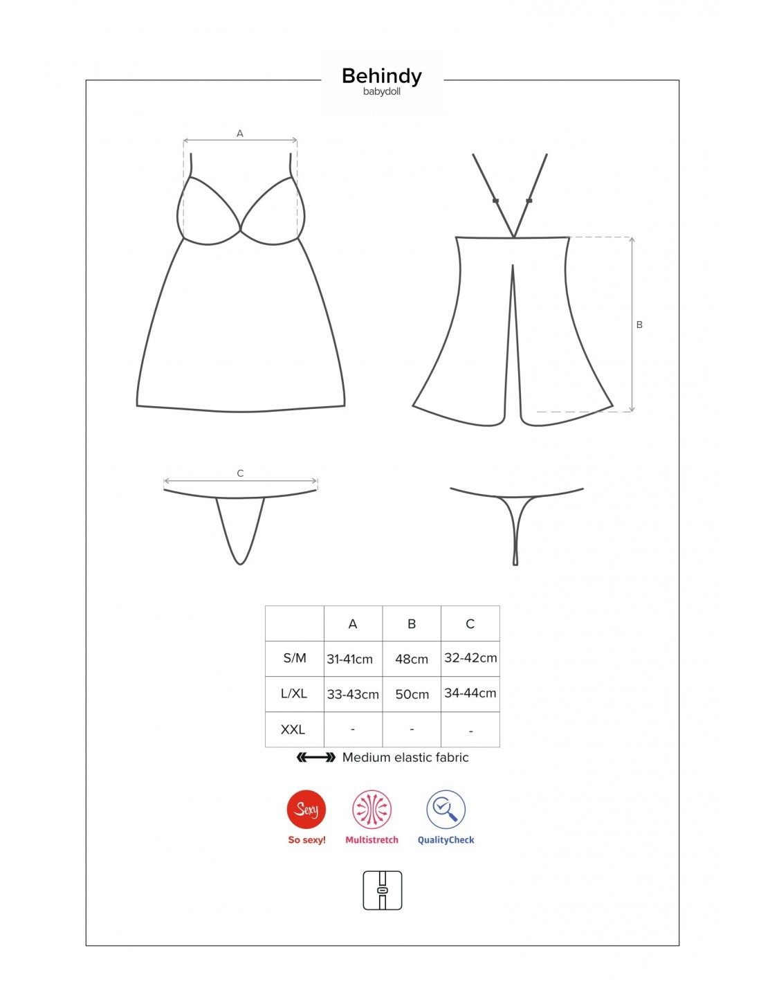 Nasz Babydoll Behindy został wykonany z przyjemnego i super elastycznego materiału, który zapewnia maksymalny komfort noszenia. Składając się z 90% poliamidu i 10% elastanu, gwarantuje on doskonałe dopasowanie do Twojej sylwetki.