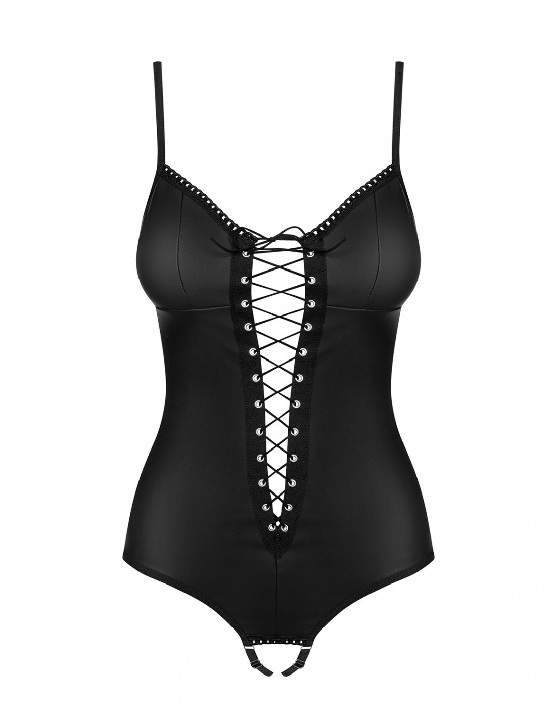 Ten czarny, skóropodobny materiał nadaje Redella body niezwykłej pikanterii. To niezwykle seksowne body posiada głębokie rozcięcie z regulującym sznurowaniem, które pozwoli Ci eksponować swoje atuty. Otwarty krok to prawdziwa rozkosz, która doda niezapomnianych doznań zarówno Tobie, jak i Twojemu partnerowi.