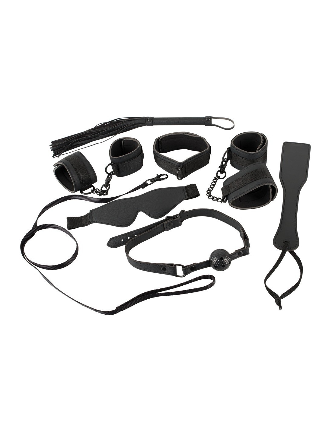 Smycz o długości 1 metra, knebel o średnicy 3,5 cm, bicz o długości 38 cm oraz wiosło o długości 27 cm umożliwią Ci pełną kontrolę i niezapomniane doznania podczas eksploracji BDSM. Wszystkie elementy zestawu są solidne i trwałe, aby zapewnić Ci wiele godzin ekscytującej zabawy.
