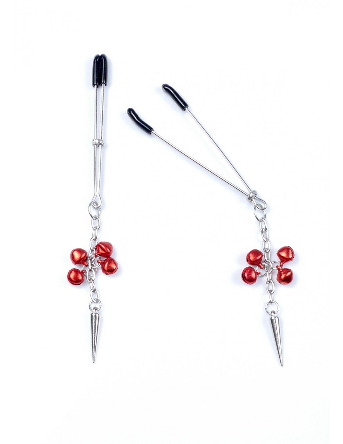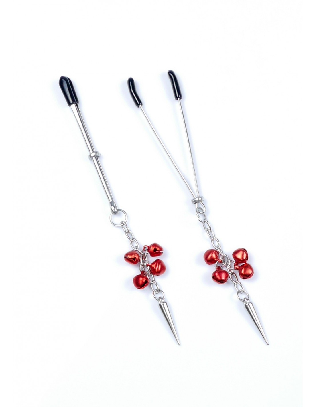 Dzięki ruchomym pierścieniom, zaciski można łatwo dostosować do indywidualnych preferencji. Od delikatnego nacisku, który pobudza zmysły, do intensywnego ucisku, który zapewnia nieziemską rozkosz - wybór należy do Ciebie. Stylowe łańcuszki i dzwoneczki dodają nie tylko estetycznego wyglądu, ale również dostarczają niesamowitych wrażeń z każdym ruchem. Poczuj, jak drażnią, łaskoczą i podniecają, sprawiając, że Twoje zmysły osiągną niebywałe szczyty przyjemności.