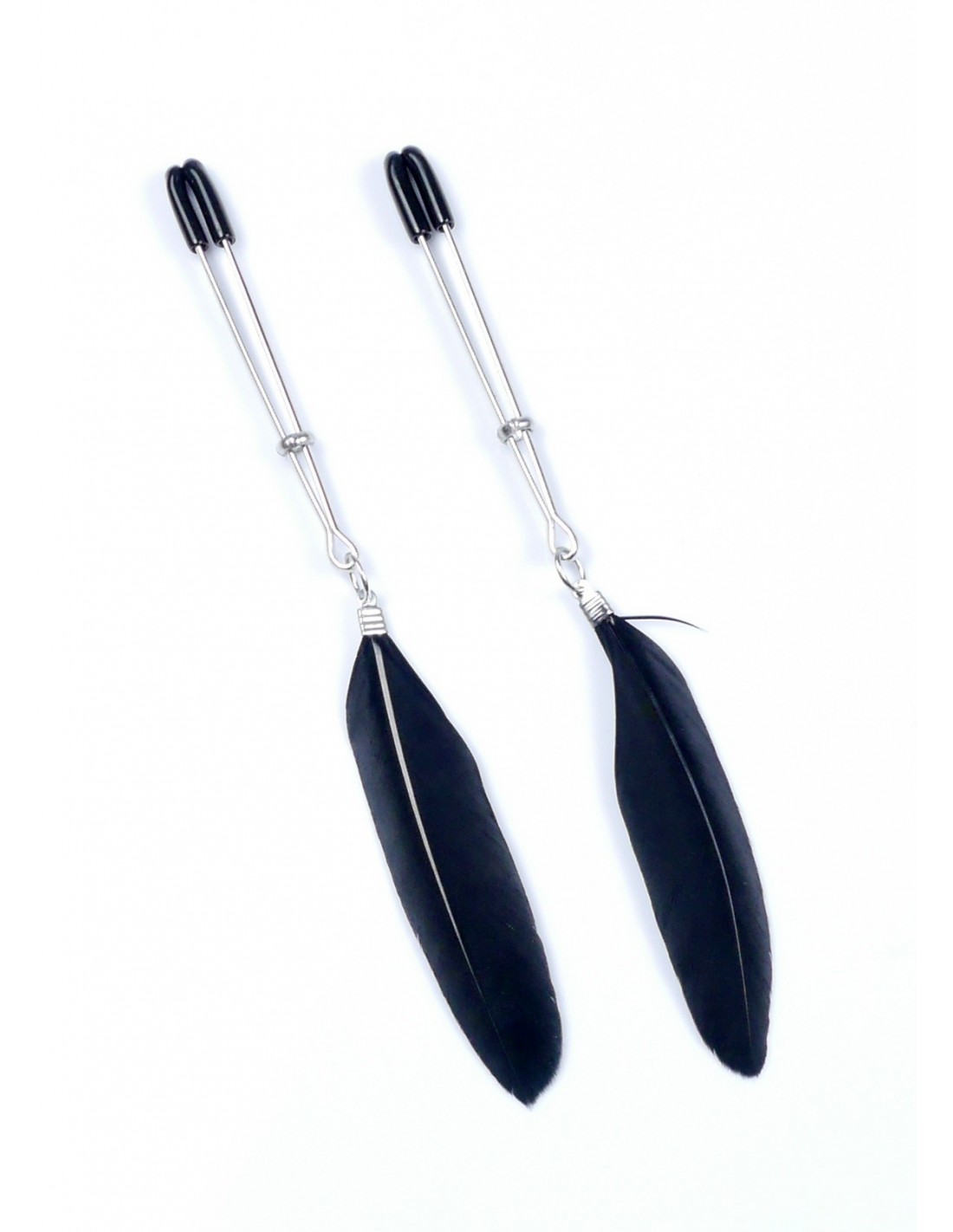 Nasze stylowe klamry na sutki Exclusive Nipple Clamps No.14 zapewnią Ci niesamowite doznania. Metalowe zaciski pokryte miękką gumą zapewnią komfort i bezpieczeństwo podczas użytkowania. Miękkie piórka, które towarzyszą klamrom, dodadzą dodatkowej stymulacji, łaskotania i podniecenia. Odkryj nowe poziomy przyjemności dzięki naszym klamrom na sutki.