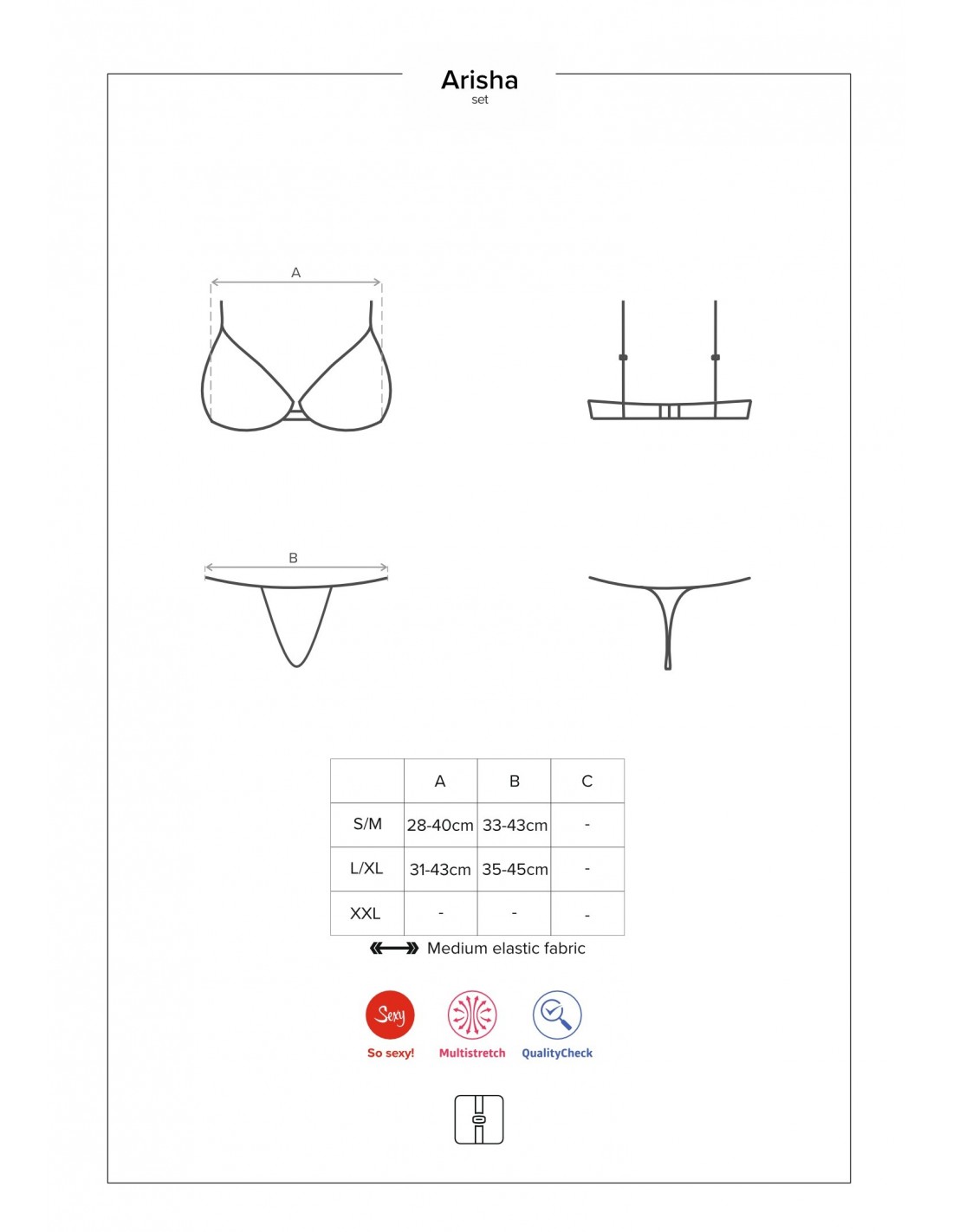 Zamów już teraz komplet Arisha i podaruj sobie i swojemu partnerowi niezapomniane chwile pełne namiętności i przyjemności. Poczuj się wyjątkowo i uwodź swoim niepowtarzalnym stylem. Nie czekaj, czas na odrobinę szaleństwa!