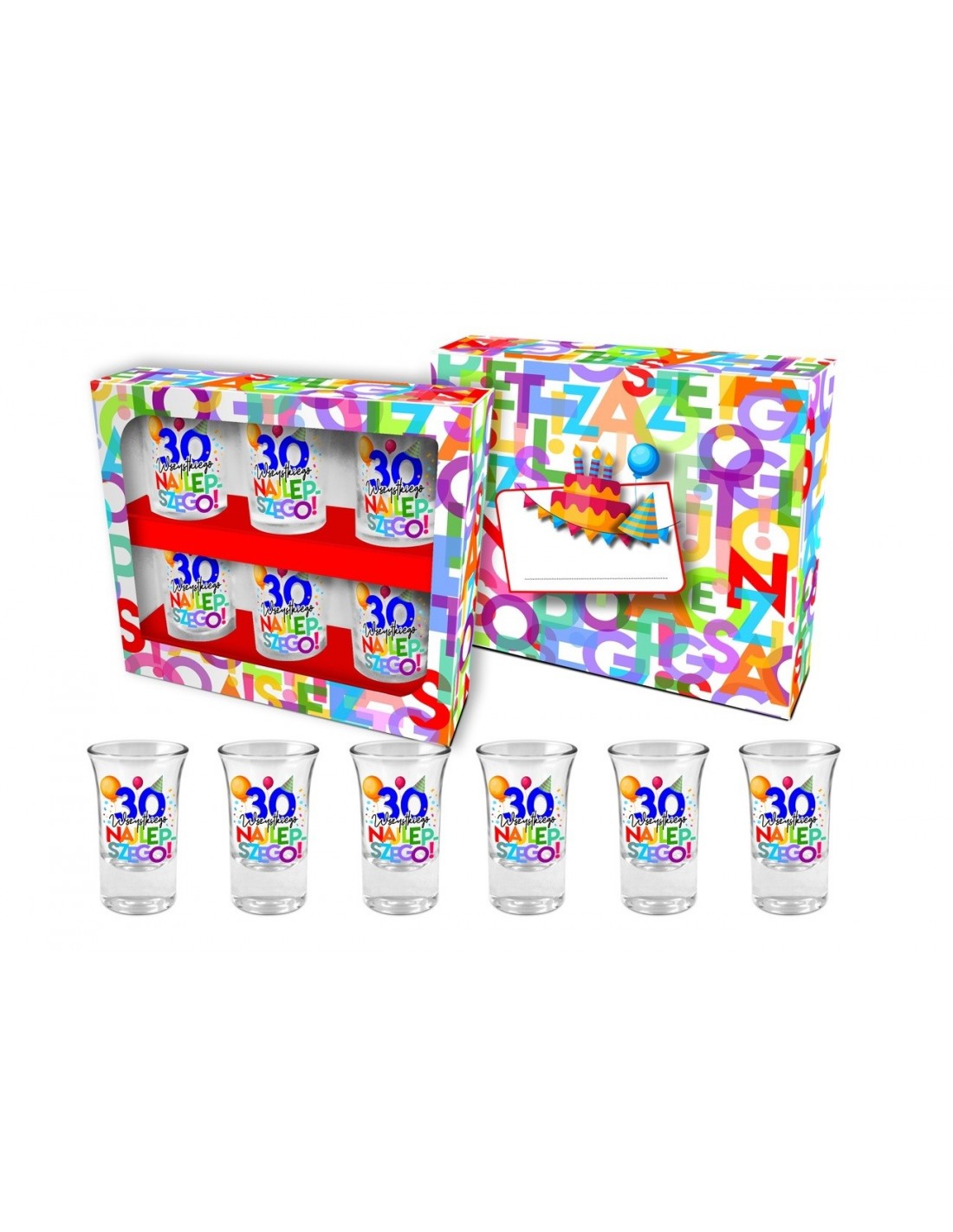 URODZINOWE LITERKI 30 zestaw 6 kieliszków 35 ml