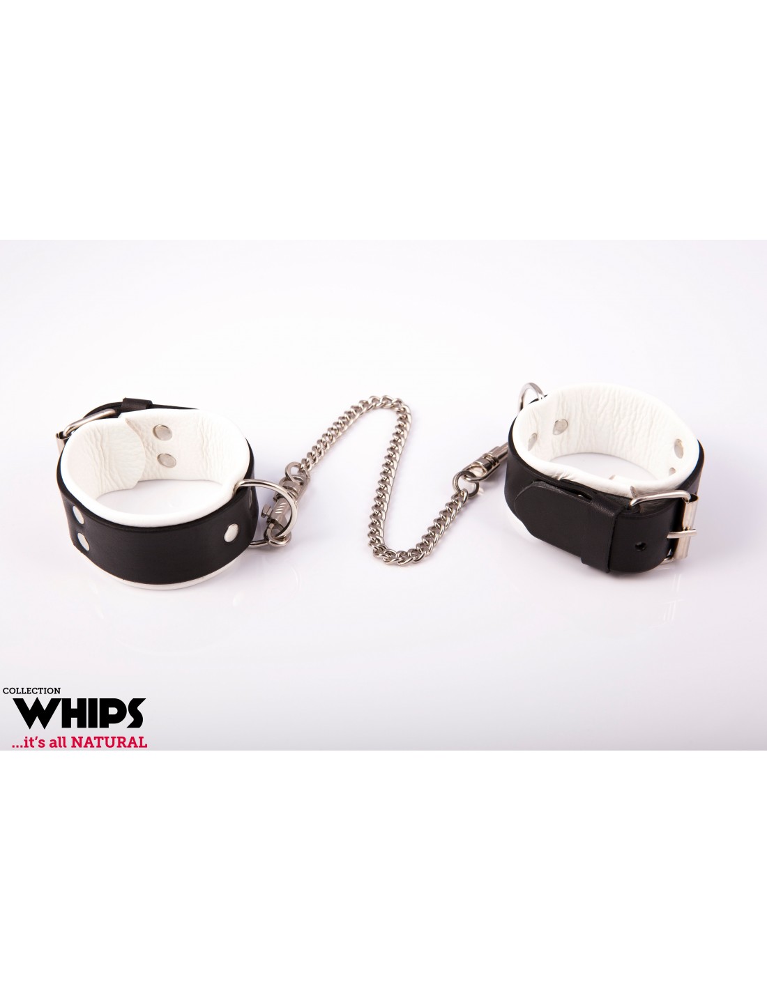 Kajdanki męskie na ręce białe od Whips Collections zostały zaprojektowane z myślą o Twojej wygodzie. Szerokość mankietów wynosząca 4cm zapewnia stabilne i bezpieczne zapięcie, które nie będzie Cię krępować. Długość łańcuszka około 30cm daje Ci swobodę ruchów, jednocześnie umożliwiając partnerowi kontrolowanie sytuacji. Dodatkowo, kajdanki posiadają masywne klamry, które zapewniają pewne i trwałe zapięcie, niezależnie od intensywności Waszych uniesień.