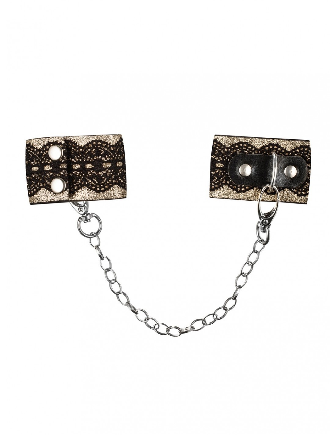 Złote kajdanki zdobione czarną koronką