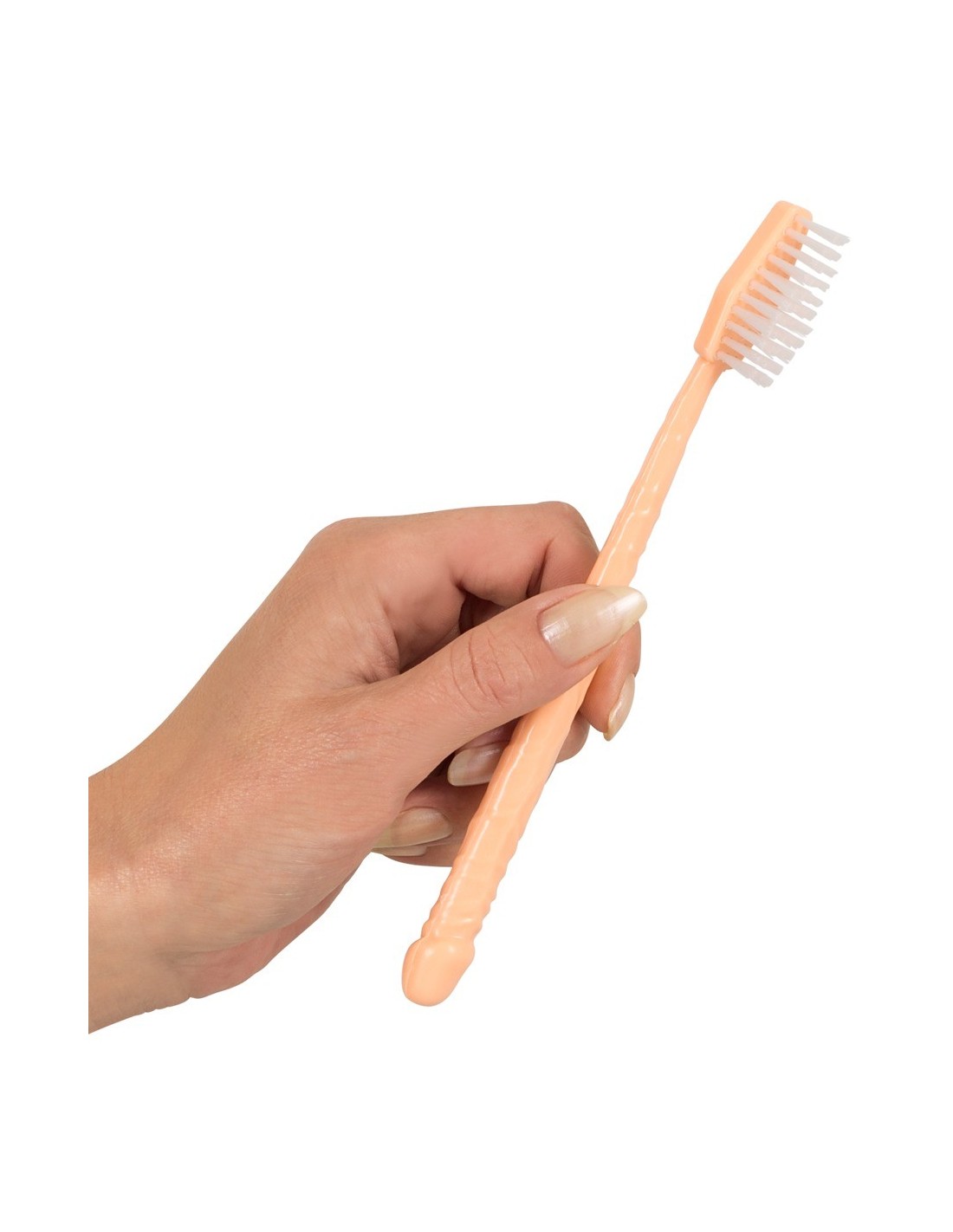 Na pewno ich rozśmieszysz, gdy dasz im tę szczoteczkę do zębów w kolorze skóry z uchwytem w kształcie penisa ... Na uchwycie znajdują się żyły, a na końcu żołądź. Długość całkowita 17,5 cm. ? 0,8 cm. Materiał: TPR.