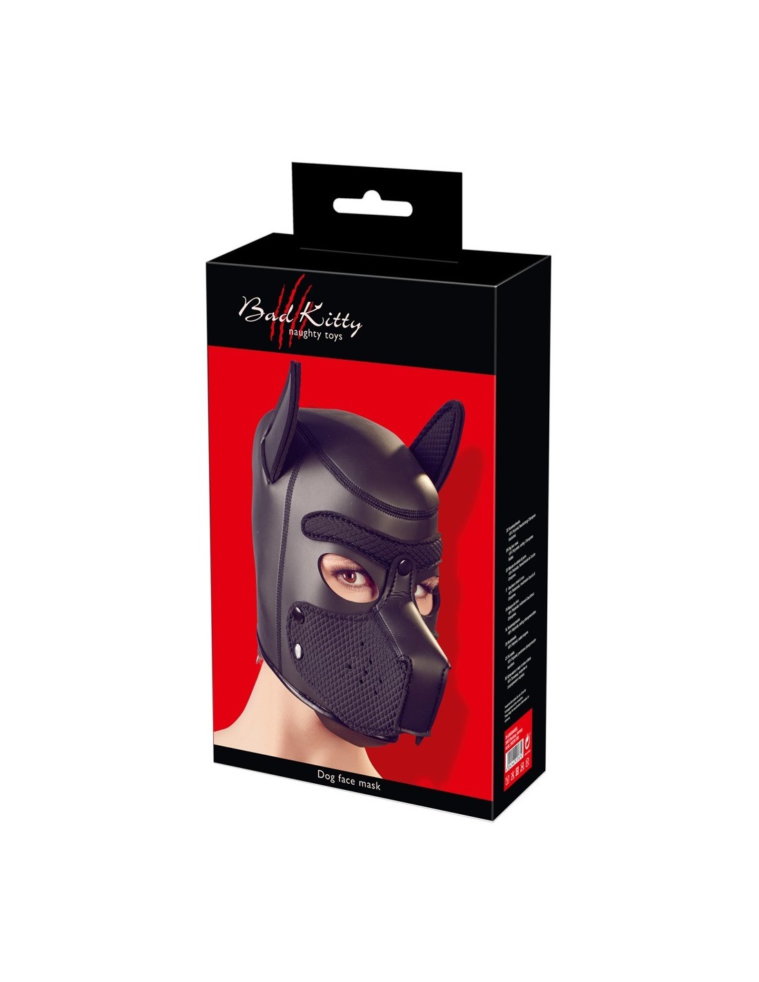 Maska na głowę psa wykonana z miękkiego neoprenu o aksamitnej powierzchni. Z odpinaną częścią ustną. Idealne dopasowanie do obudowy.