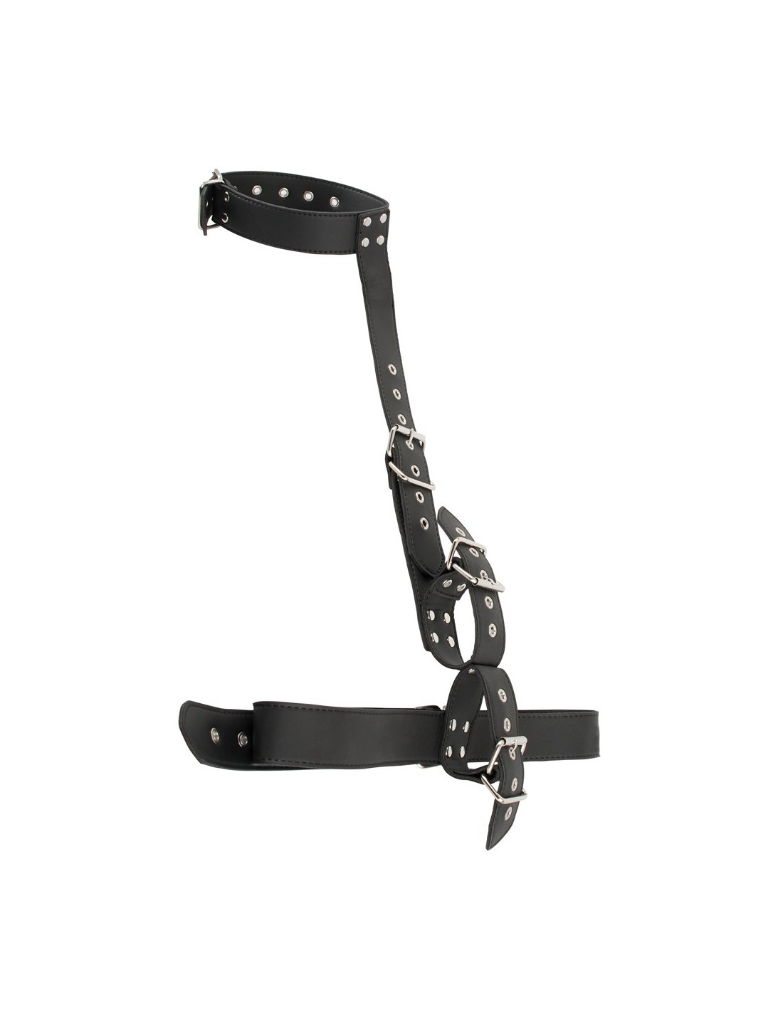 Nasza uprząż została starannie zaprojektowana przez ekspertów z marki Vegan Fetish, aby zapewnić Ci zarówno estetyczne jak i funkcjonalne doświadczenie. Wykonana z najwyższej jakości poliuretanu, ta uprząż jest nie tylko w 100% wegańska, ale również niezwykle wytrzymała i trwała.