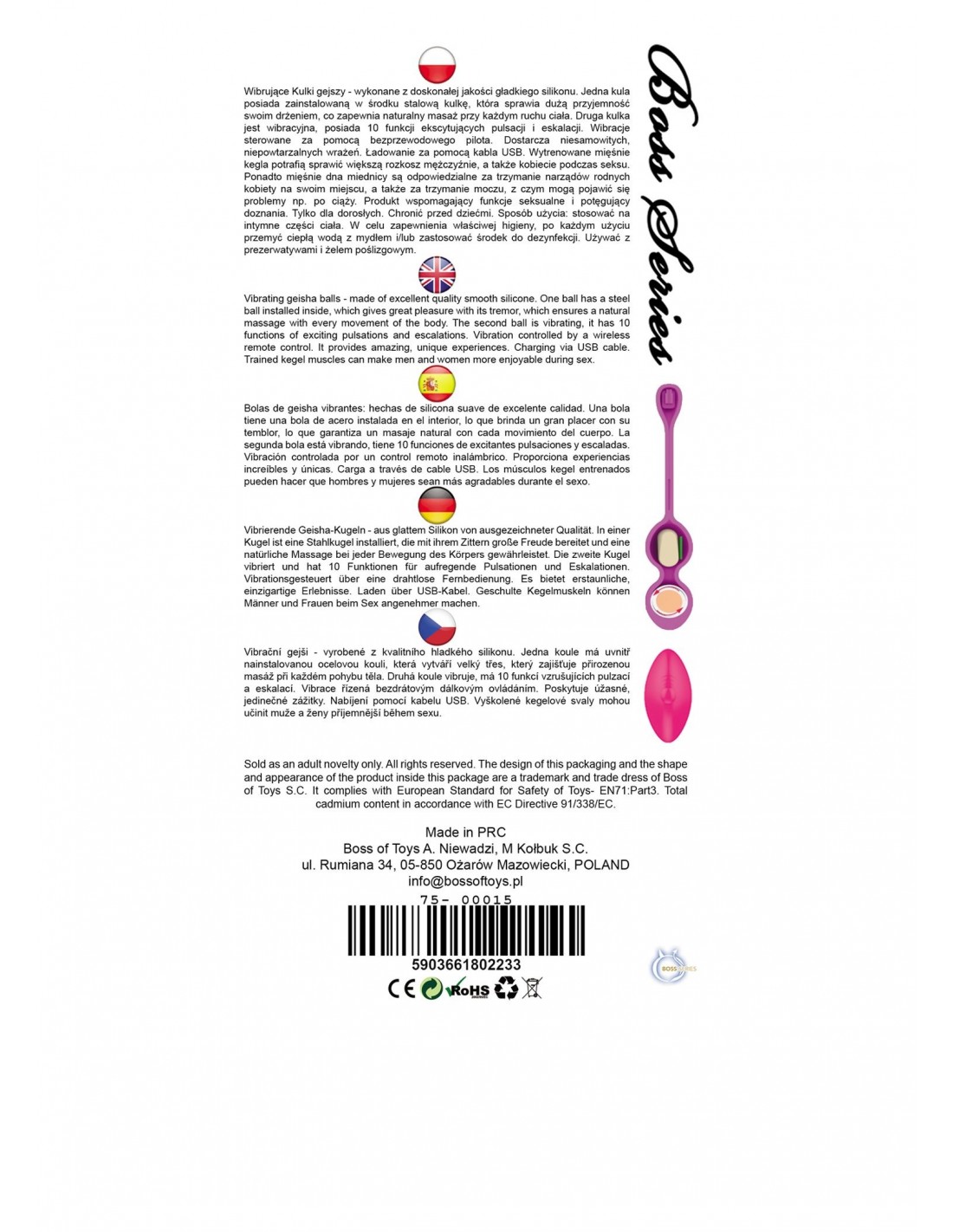 Boss SeriesWibrujące Kulki Gejszy 32 Mm 80 G Pink 10 Funkcji Usb Remote Control