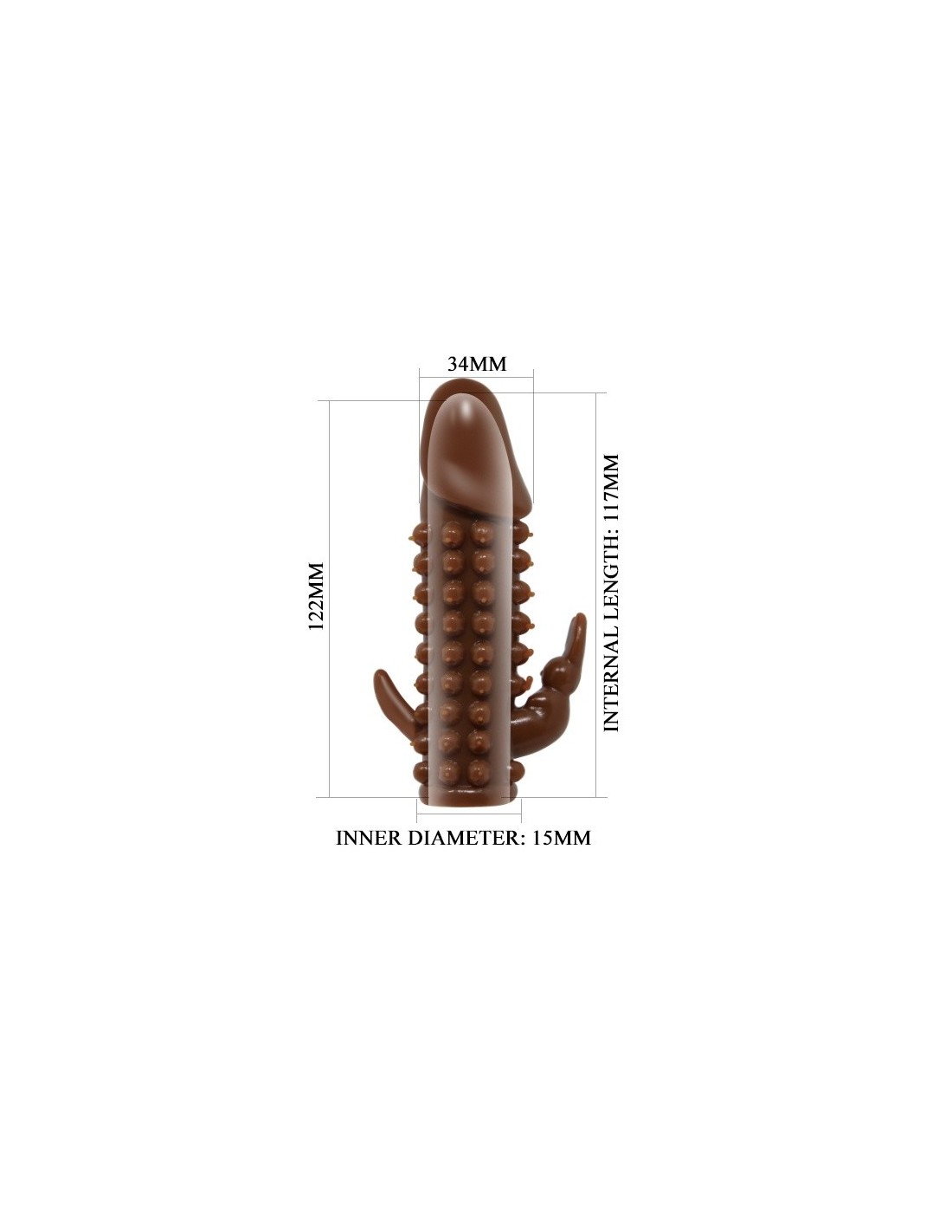 Ta anatomicznie wyprofilowana nakładka doskonale dopasowuje się do każdego penisa, zapewniając nie tylko większą długość, ale również większą grubość. Dzięki delikatnym wypustkom na całej powierzchni i języczkowi do stymulacji anusa, Twoja partnerka doświadczy niesamowitej stymulacji, podczas gdy stymulator łechtaczki w kształcie króliczka zapewni jej jeszcze większą rozkosz.