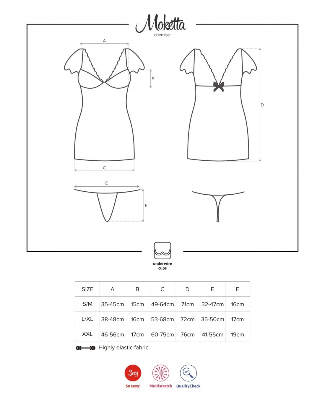 Bielizna nocna Moketta to nie tylko świetny wybór dla Ciebie, ale również doskonały prezent dla Twojego partnera. Zaskocz go tą niezapomnianą niespodzianką i pozwól mu poznać swoje fantazje na nowo. Bądź pewna, że będzie totalnie zadowolony i szybciutko odwdzięczy Ci się za ten niezapomniany wieczór.