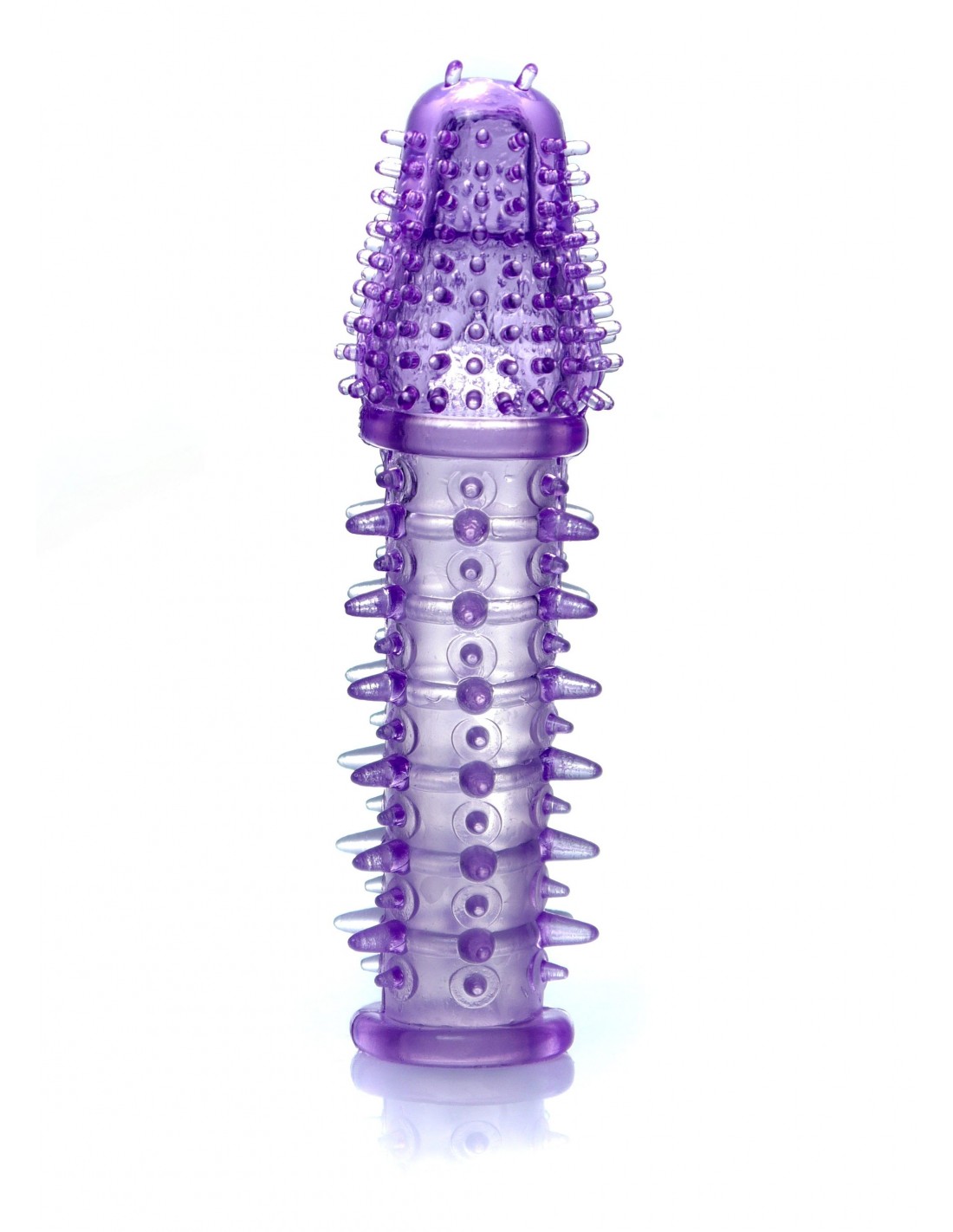 Nasadka na penisa z mnóstwem wypustek zaprojektowanych w taki sposób, by odpowiednio stymulować miejsca intymne Twojej partnerki.