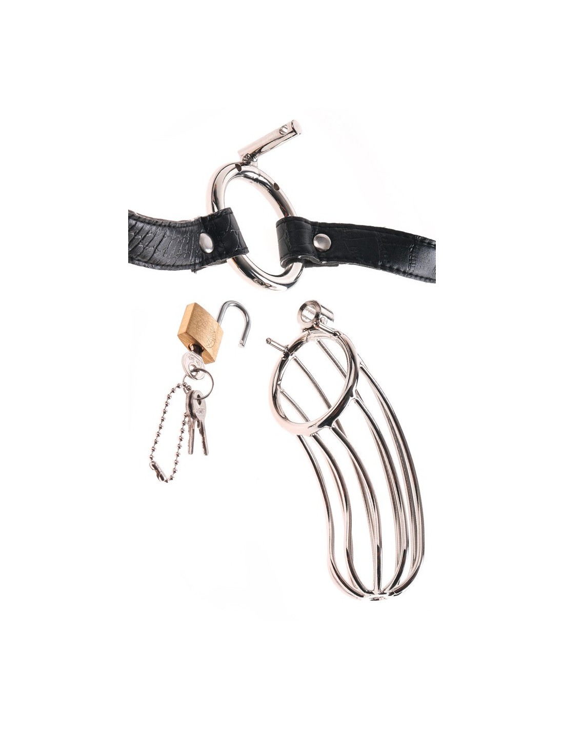 Wyobraź sobie, jak Twoja władza i kontrola nad nim wzrastają, gdy widzisz go walczącego w więziennych granicach. Bez względu na to, jak bardzo jest pobudzony, zakrzywiony stalowy kształt zapobiega wyprostowaniu się łodzi podwodnej, ale otwarta konstrukcja nadal pozwala mu na swobodę sikania, gdy zajdzie taka potrzeba.