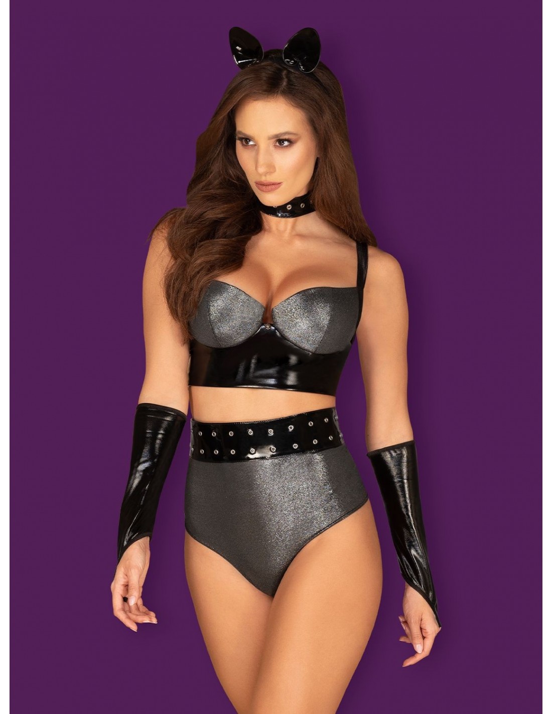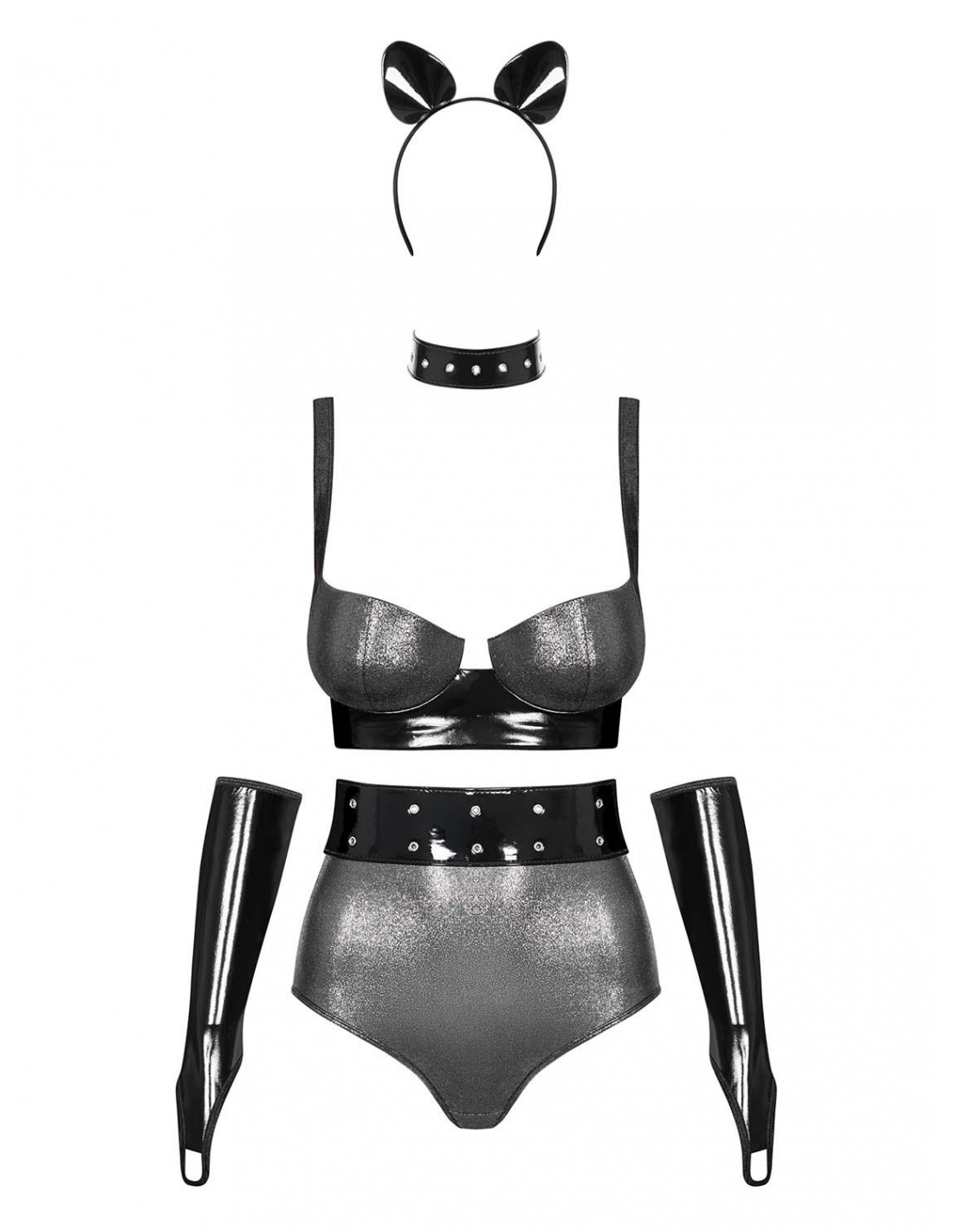 Komplet Bielizny Silveria S/M to nie tylko biustonosz i majtki. Zestaw zawiera także uszka, rękawiczki, pasek i choker, które dopełniają całość. Wykonane z trwałych materiałów, takich jak poliamid, elastan, PVC, plastik i metal, zapewniają nie tylko wyjątkowy wygląd, ale także długotrwałe użytkowanie.