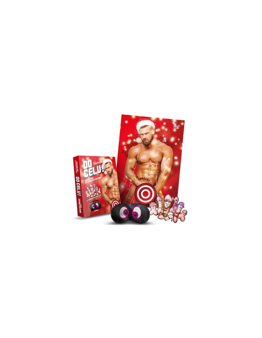 Do celu! - wersja świąteczna to nie tylko gra, ale również zestaw dodatków, które dodadzą jeszcze więcej frajdy do Twojej imprezy. Wielkoformatowy plakat z obrazem przystojnego mężczyzny, 12 zabawnych naklejek, opaska na oczy i order zwycięzcy - wszystko to sprawi, że wieczór stanie się niezapomnianym przeżyciem.