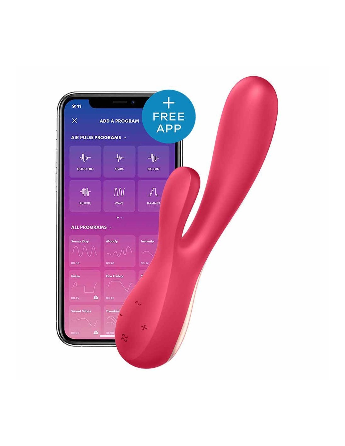Dzięki naszej bezpłatnej aplikacji Satisfyer Connect, możesz teraz kontrolować wibracje Mono Flex za pomocą swojego telefonu. Stwórz własne programy wibracji, dostosuj je do swoich preferencji i ciesz się niezwykłymi doznaniami. Możliwości są nieograniczone!