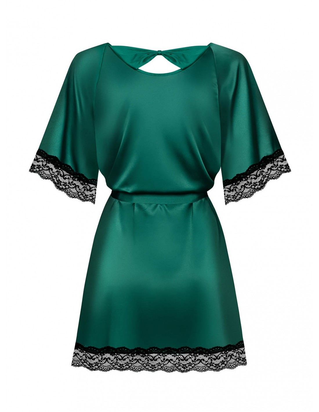 Czy marzysz o wieczorach pełnych romantyzmu i namiętności? Zmysłowy szlafroczek Sensuelia w kolorze głębokiej, szmaragdowej zieleni jest tym, czego potrzebujesz! Jego niezwykły design przyciąga uwagę i dodaje tajemniczości. Czarne, koronkowe wykończenia dodają elegancji i podkreślają Twoją kobiecość. Satynowy paseczek w talii nie tylko podkreśla Twoje piękne kształty, ale również umożliwia dopasowanie szlafroczka do Twoich preferencji.
