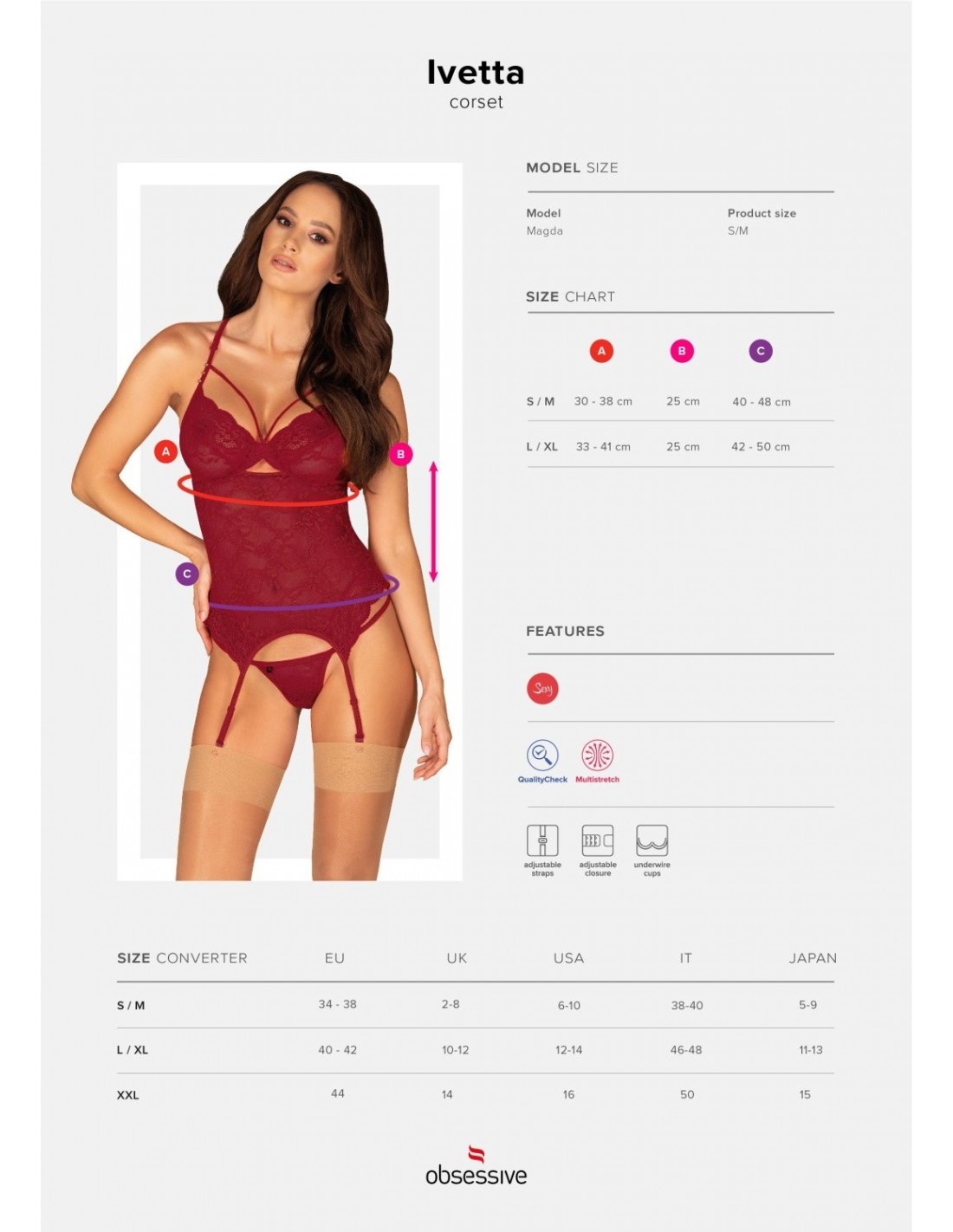 Zapraszamy do świata niezwykłej kobiecości i uwodzenia! Gorset Ivetta to model, który sprawi, że poczujesz się niezwykle atrakcyjna i pewna siebie. Jego wyjątkowy fason podkreśli Twoje plecy oraz biust, dodając Ci pewności siebie i seksapilu.