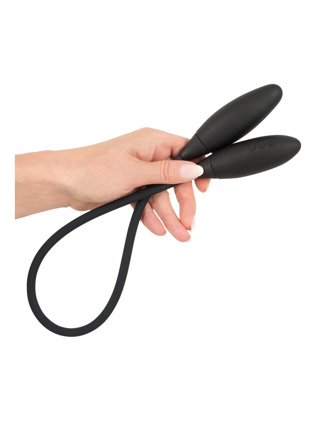 Wyposażony w wibrujące kule na obu końcach, ten korek analny oferuje niezwykłą przyjemność zarówno dla ciebie, jak i dla twojego partnera. Możecie jednocześnie korzystać z wibracji, wprowadzając oba końce korka do swoich ciał. Miękka powierzchnia i wąski kształt kulek ułatwiają ich wprowadzanie zarówno do pochwy, jak i odbytu.