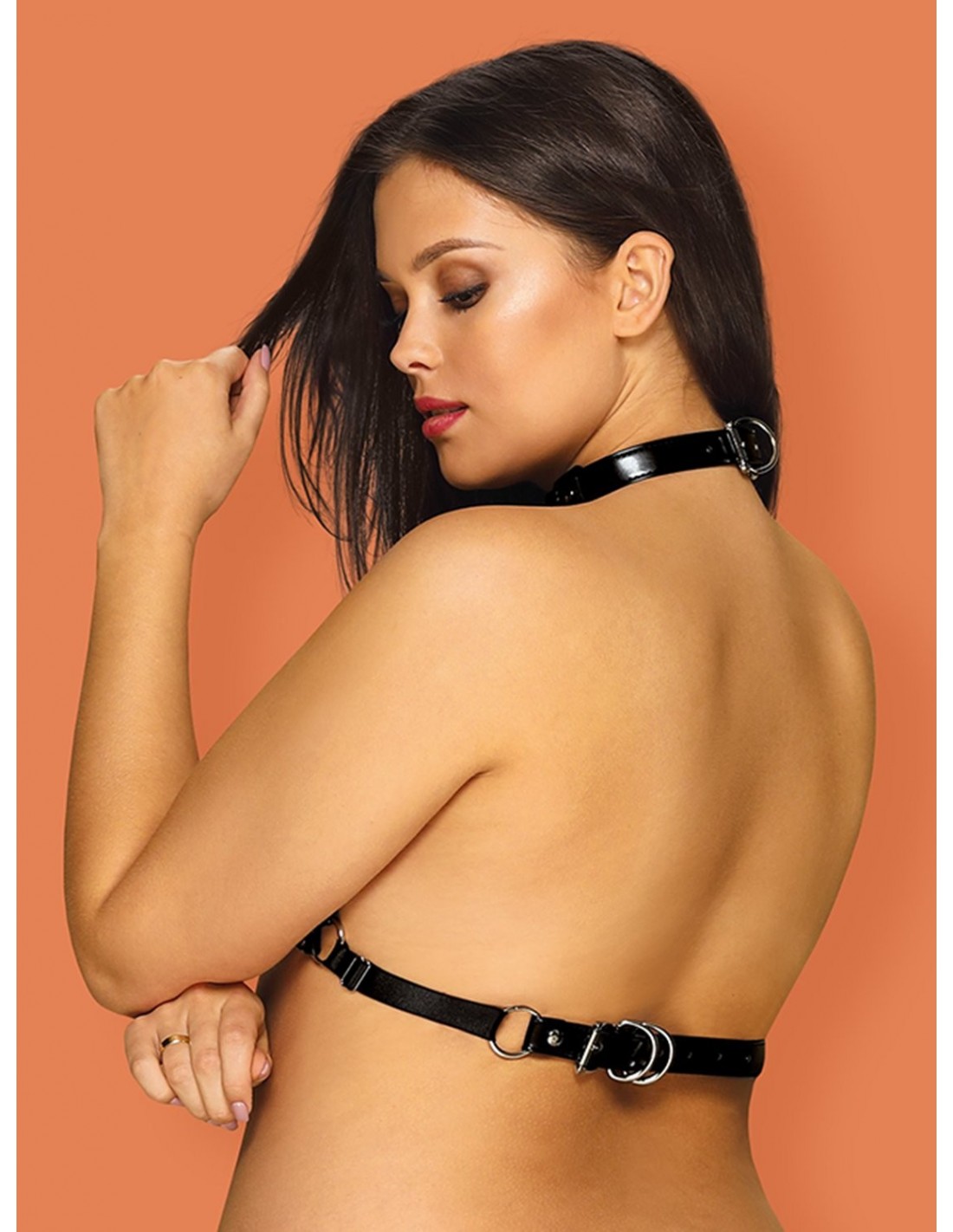 Przygotuj się na niezapomniane doznania z uprzężą erotyczną Obsessive A755. Ta czarna uprząż w formie biustonosza oczaruje Cię swoim zjawiskowym połyskiem i zalotnym wyglądem chokera. Wykonana z trwałych materiałów, zapewniających niezawodność i komfort, ta uprząż jest idealnym dodatkiem do Twojej kolekcji.