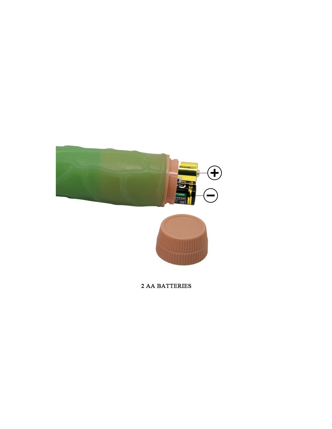Wibrator zasilany jest dwoma bateriami AA, a jego opakowanie ma wymiary 240 x 70 x 70 mm.