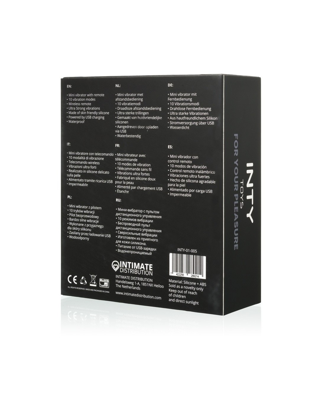 Mini wibrator INTY Toys - Pulse oferuje aż 10 różnych trybów wibracji, które pozwolą Ci eksperymentować i odkrywać nowe poziomy przyjemności. Bezprzewodowy pilot umożliwia łatwą kontrolę nad wibracjami, dzięki czemu możesz skupić się tylko na swojej rozkoszy.