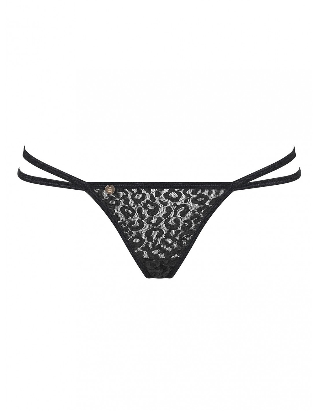 Te stringi to połączenie kuszącej siateczki w cętki i zjawiskowego łańcuszka na pośladkach. Dzięki temu unikalnemu wzorowi, będziesz wyglądać niezwykle seksownie i zmysłowo. Kombinacja paseczków wokół bioderek dodaje niepowtarzalnego uroku i sprawia, że Twoje ciało wygląda jeszcze bardziej kusząco.