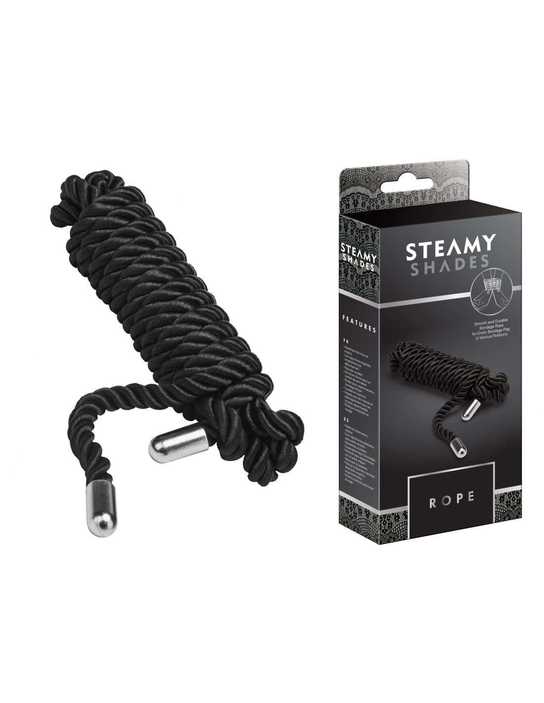 Nasza lina BDSM Steamy Shades Rope została wyposażona w srebrne końcówki, które zapobiegają plątaniu się i zapewniają maksymalną trwałość. Nie musisz się martwić o to, że lina się zniszczy lub straci swoje właściwości. Możesz cieszyć się nią przez długi czas, eksplorując nowe możliwości i odkrywając swoje fantazje.