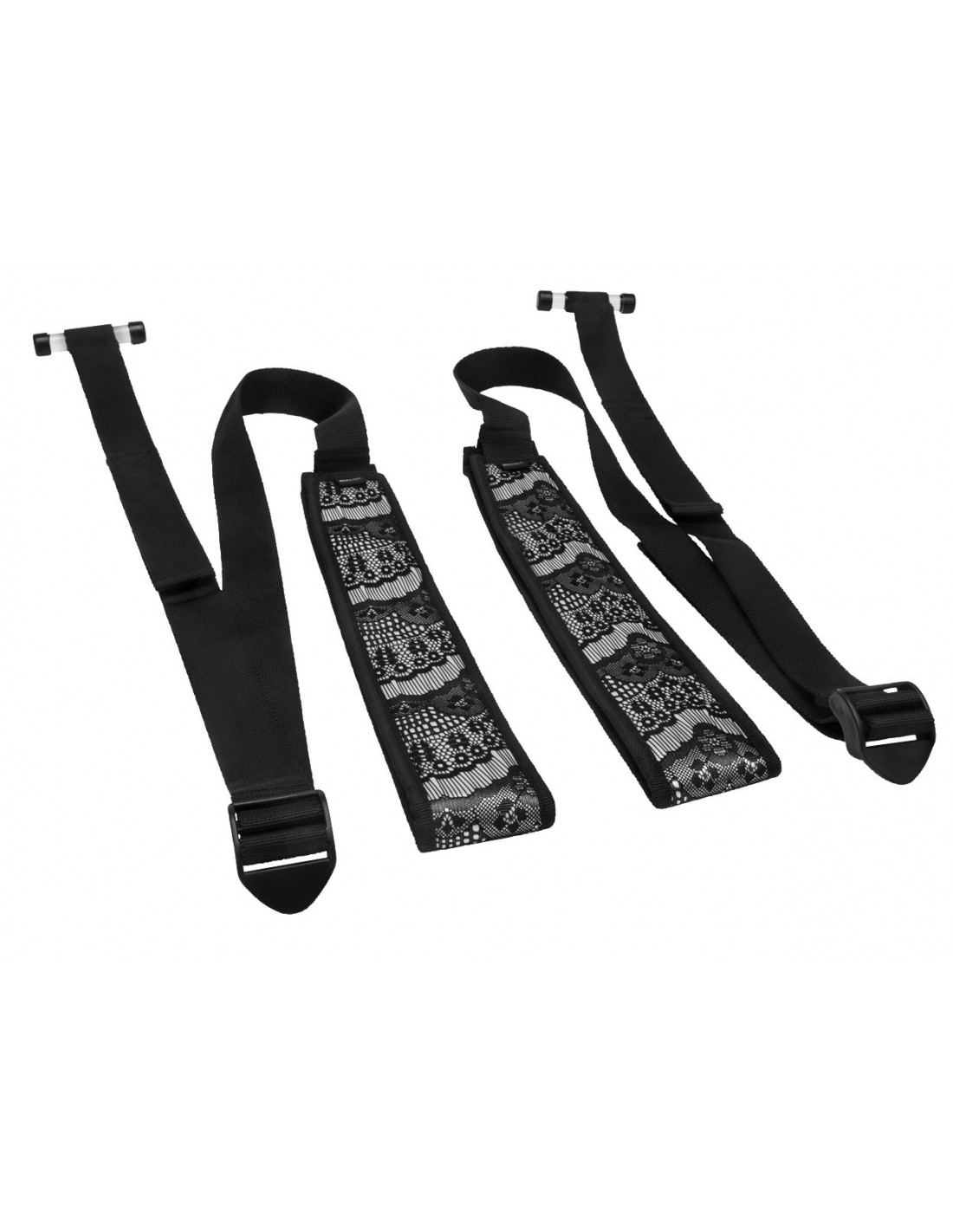 Uprząż BDSM Steamy Shades Door Swing nie tylko zapewnia niezapomniane doznania, ale także prezentuje się niezwykle stylowo. Paski na nogi mają elegancką, przezroczystą, czarną koronkową nakładkę, która dodaje nieco tajemniczości i seksapilu. Wyściełane paski zapewniają również wygodę i komfort podczas użytkowania.