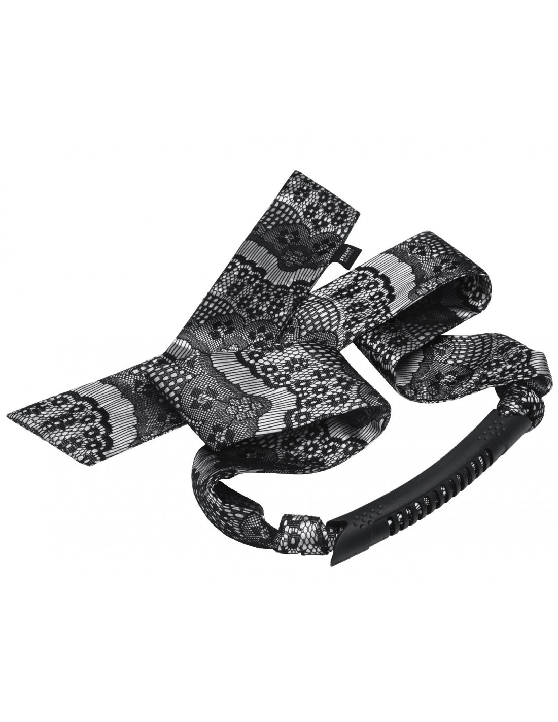 Przenieś swoje doświadczenie na wyższy poziom dzięki przezroczystej czarnej koronkowej nakładce, która dodaje luksusowego wyglądu. Ta elegancka nakładka na lśniący szary materiał sprawia, że ten knebel jest nie tylko funkcjonalny, ale również wyjątkowo stylowy. Bądź gotowy na uwodzicielskie i kuszące chwile, które z pewnością zapamiętasz na długo.