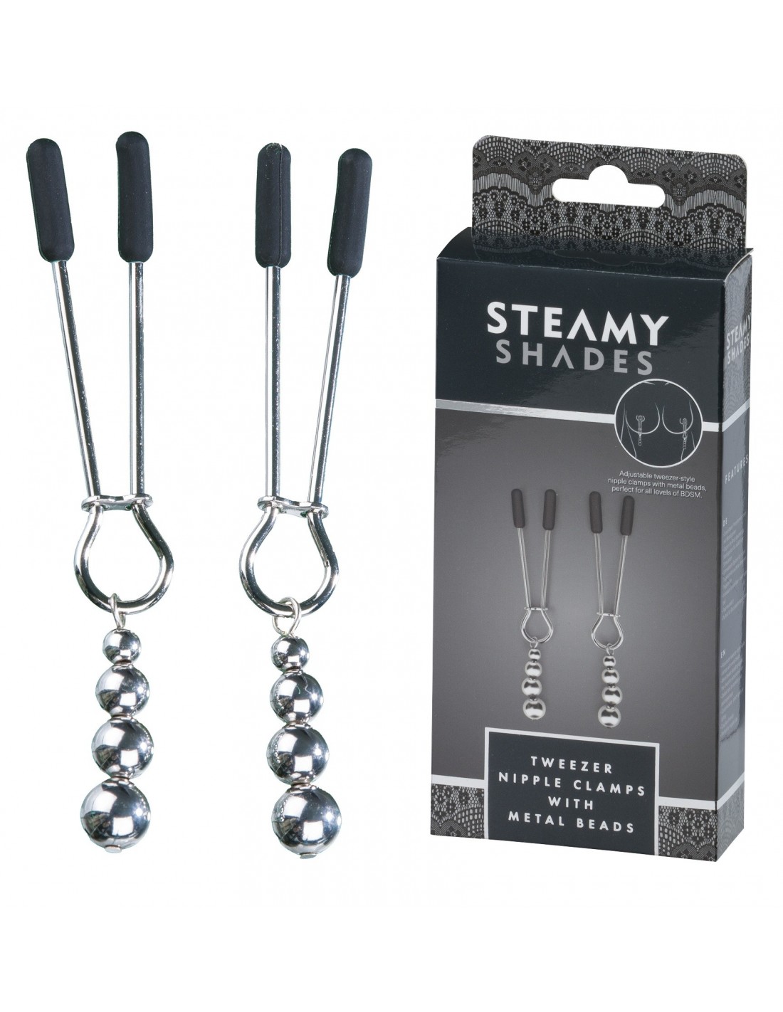 STEAMY SHADESZaciski na sutki Steamy Shades Tweezer Nipple Clamps With Metal Beads