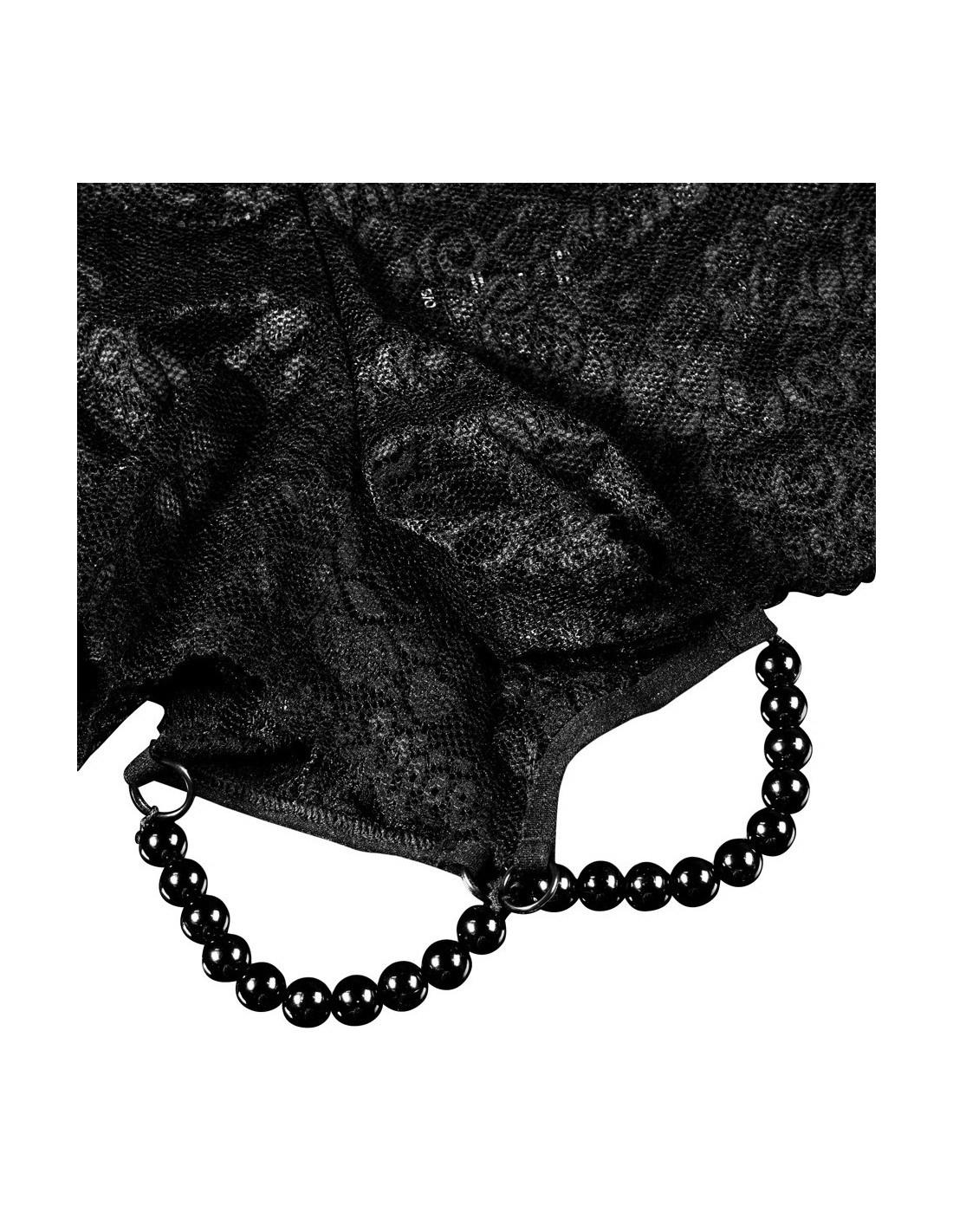 HOOKUP PANTIESThe Pleasure Pearls Boy Shorts od HookUp Majtki to sznurek wykonany z koronki. Sznurek ma bardzo szeroki pas i dwa rzędy pereł nad kroczem. Perły stymulują i masują osobę noszącą szorty za każdym razem, gdy się poruszają. Masują również penisa w podniecający sposób podczas seksu.