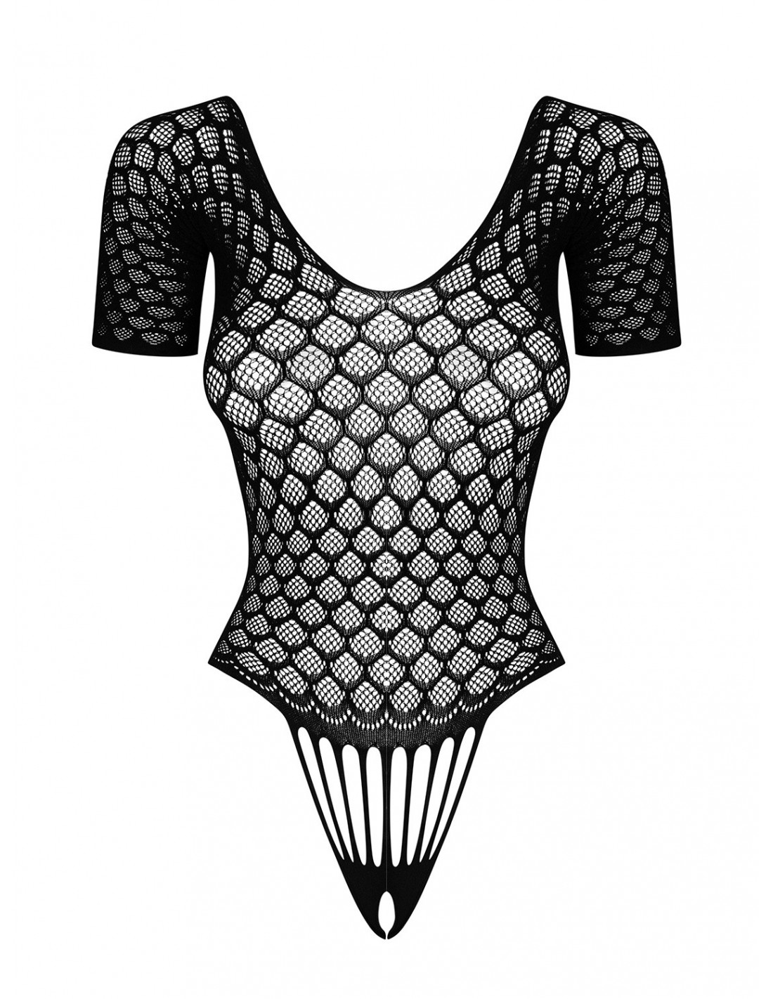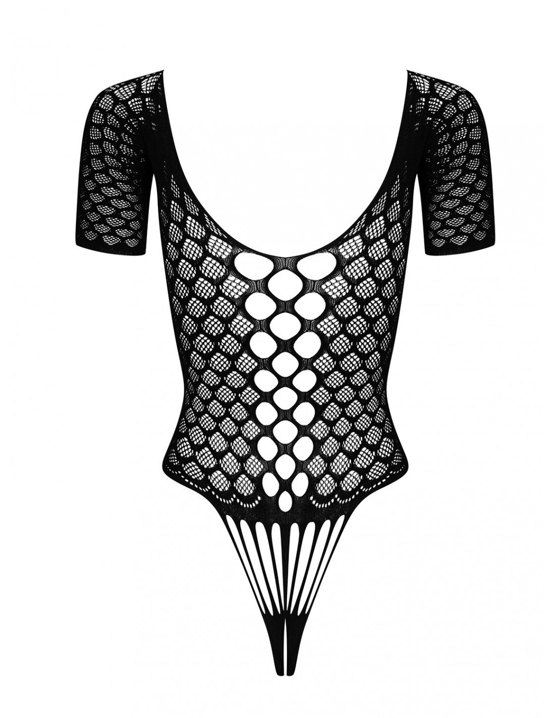 Body B131 to nie tylko seksowny wygląd, ale także funkcjonalność. Otwarty krok zapewnia nieograniczoną swobodę i łatwość w korzystaniu z tego wyjątkowego bodystockingu. Dekolt odkrywający ramiona i plecy dodaje nutę tajemniczości i zapewnia zmysłowy wygląd. Dodatkowo, geometryczny wzór i drobne wycięcia na plecach subtelnie ozdabiają Twoje ciało, podkreślając jego piękno. Wysoko wycięty dół z paseczkami dodatkowo akcentuje Twoje biodra, nadając im kuszący wygląd.