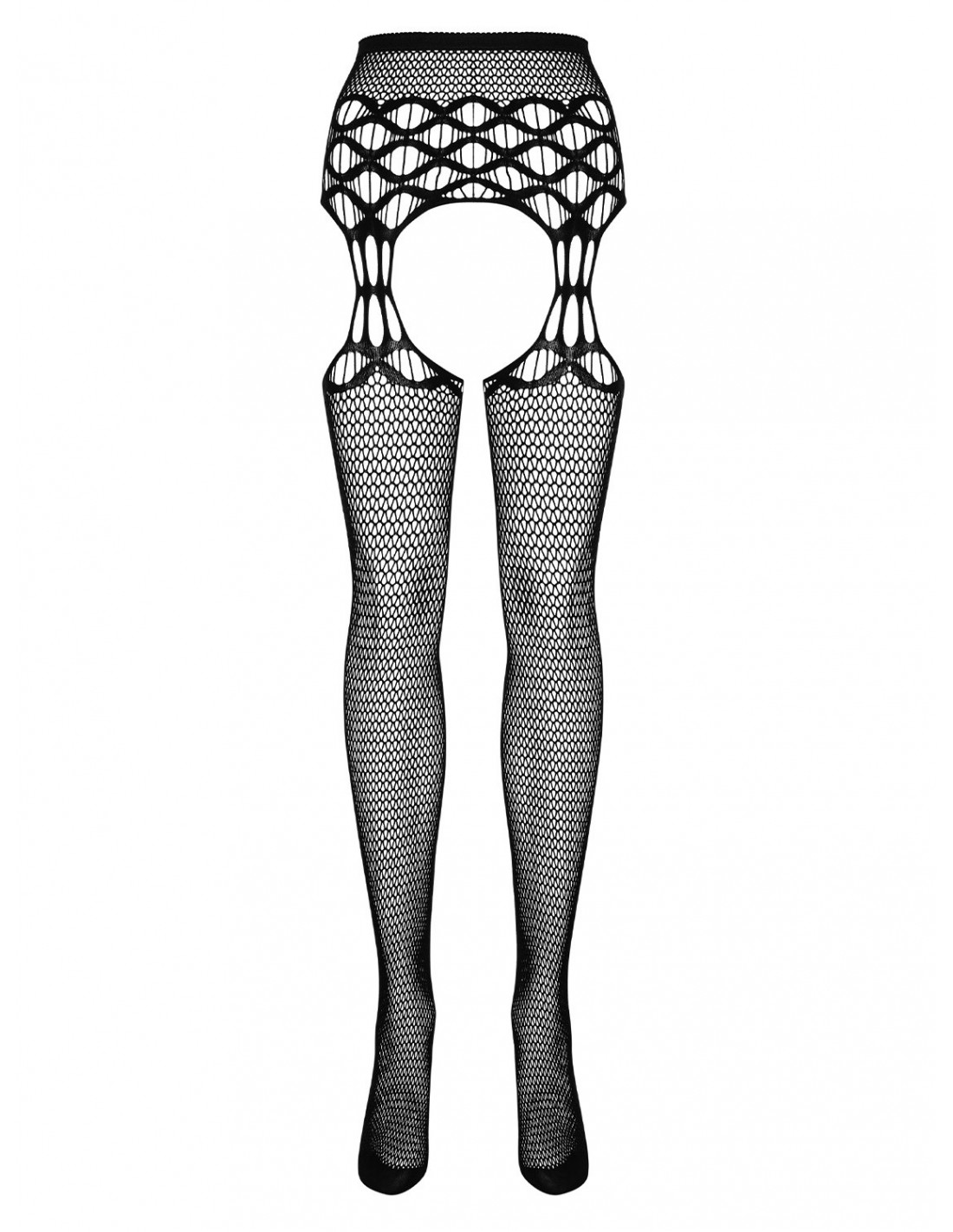 Prześwitująca czarna dzianina garter stockings S816 sprawi, że Twoje pośladki będą wyglądać absolutnie fenomenalnie. Wysoki stan i oryginalny wzór dodadzą Ci kobiecego stylu, a odsłonięte biodra i pośladki uwodzicielsko podkreślą Twoje kształty.