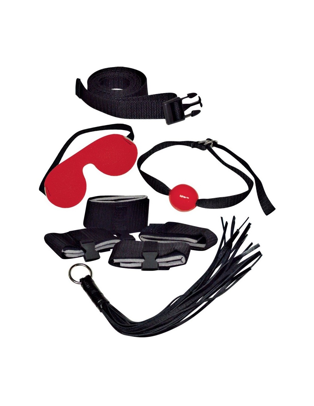 Zestaw BDSM BK Bondage Set to osiem wytrzymałych akcesoriów w kolorze czarnym i czerwonym, które zapewnią Ci niezapomniane doznania. Oto co znajdziesz w naszym zestawie: