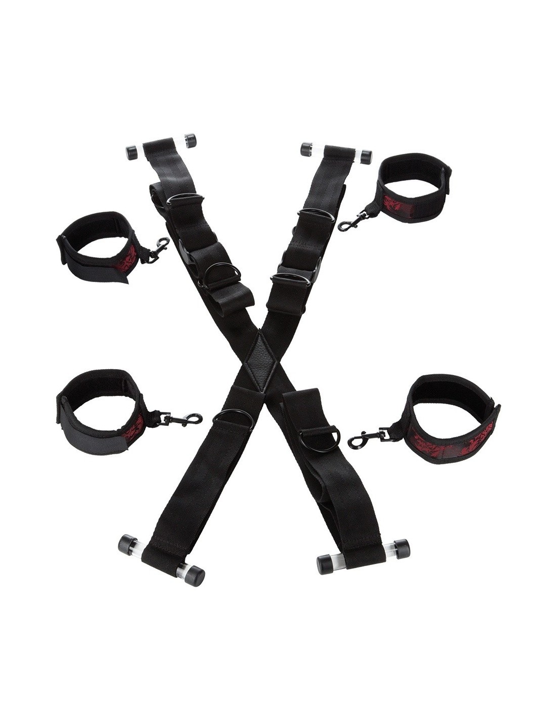 Nasze wiązania-SCANDAL OVER THE DOOR CROSS są nie tylko niezwykle praktyczne, ale także wszechstronne. Wszystkie cztery bransolety są zakończone karabińczykami, co umożliwia ich używanie z innymi akcesoriami z serii Scandal. Na przykład, założone na nogi, umożliwiają założenie rozpórki, co dodatkowo podkręci atmosferę w sypialni.