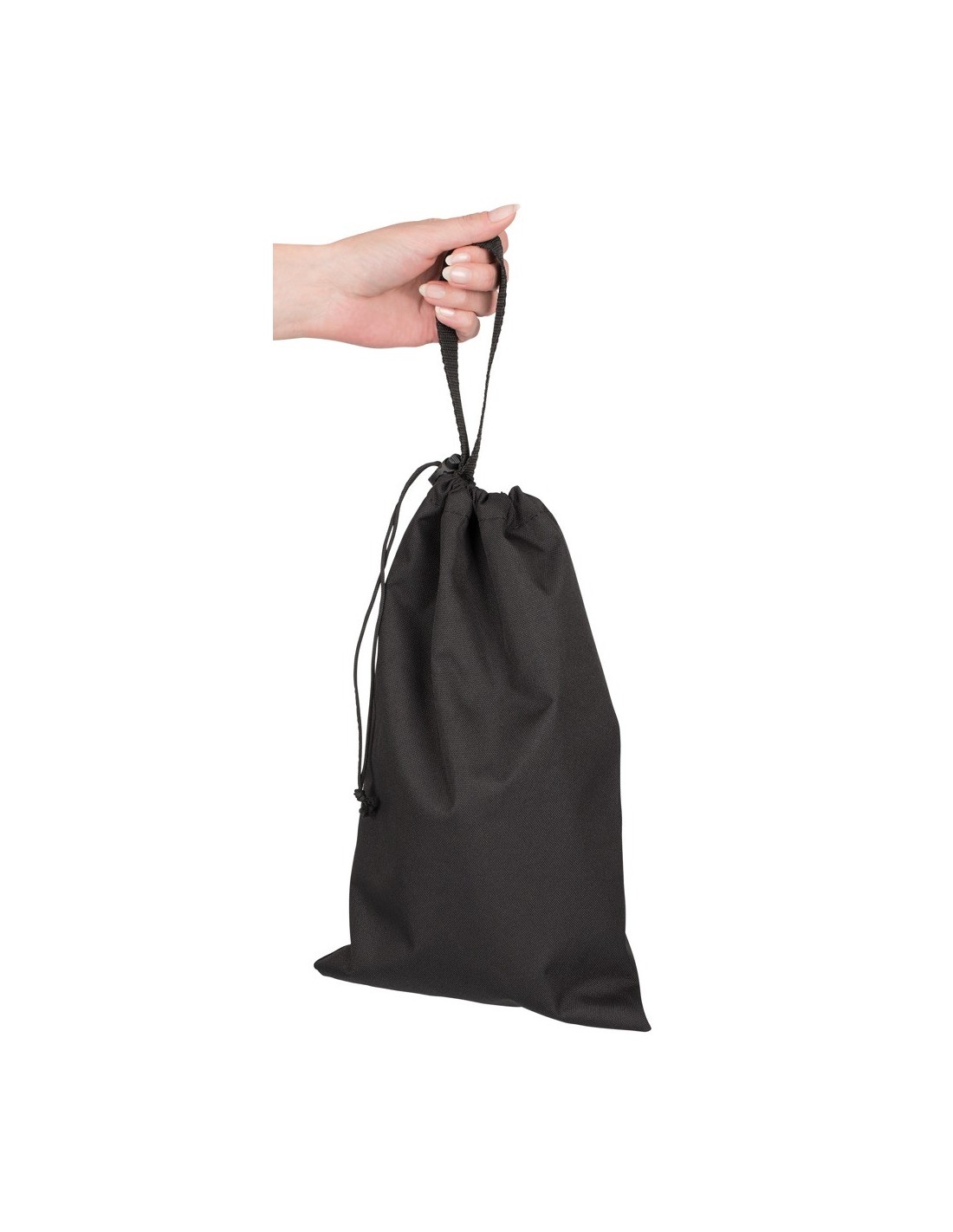 Czarna torba do przechowywania z pętlą. 24 x 35 cm. Materiał: poliester.