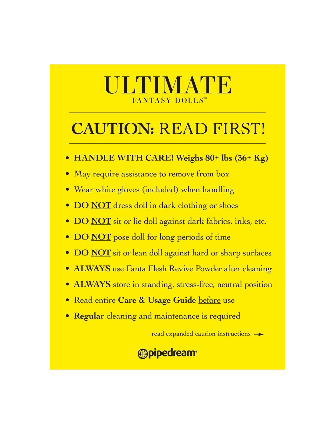 Nasza lalka seksualna Ultimate Fantasy Dolls Kitty dostarczana jest z bogatym zestawem akcesoriów, które umilą Ci chwile spędzone z nią. W zestawie znajdziesz balsam do ciała wilgotny, odświeżający środek do czyszczenia zabawek, proszek odświeżający Fanta Flesh Revive Renewal Powder, irygator oczyszczający, ładowalną różdżkę grzewczą z USB, zestaw bielizny, parę rękawiczek z białej bawełny, dwa rękawy masturbacyjne wykonane z TPE, pasek materiału TPE oraz zestaw wymiennych gwoździ wciskanych. Wszystko, czego potrzebujesz, aby w pełni cieszyć się swoją nową przyjaciółką.