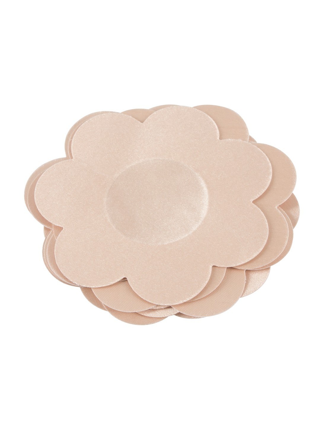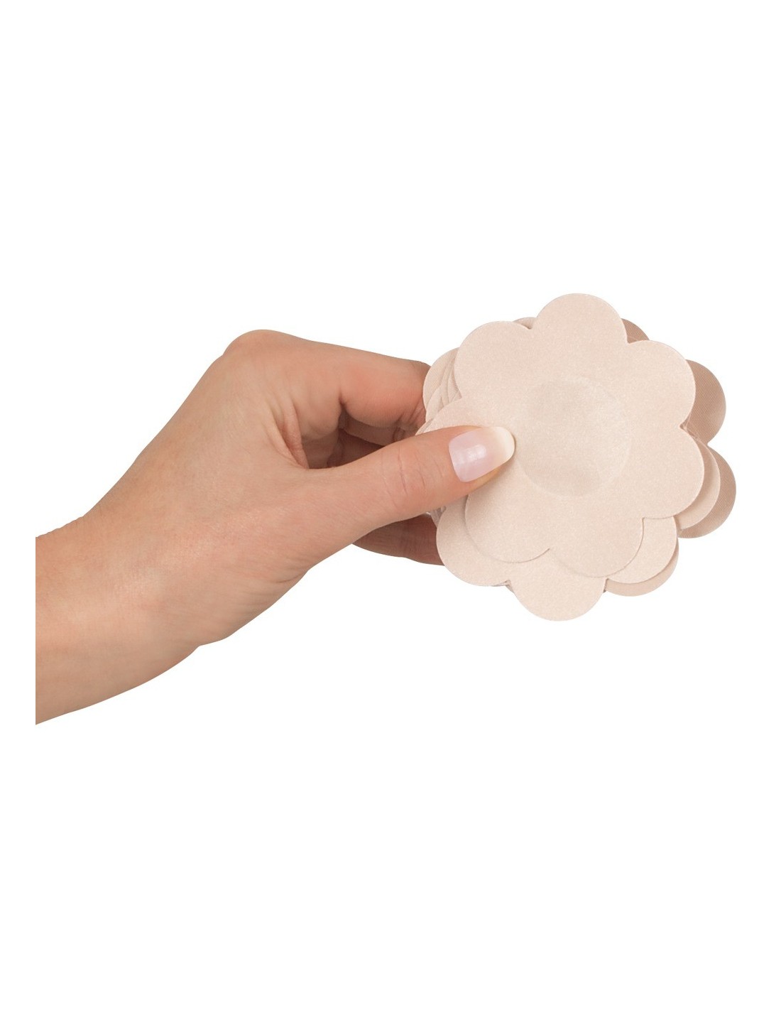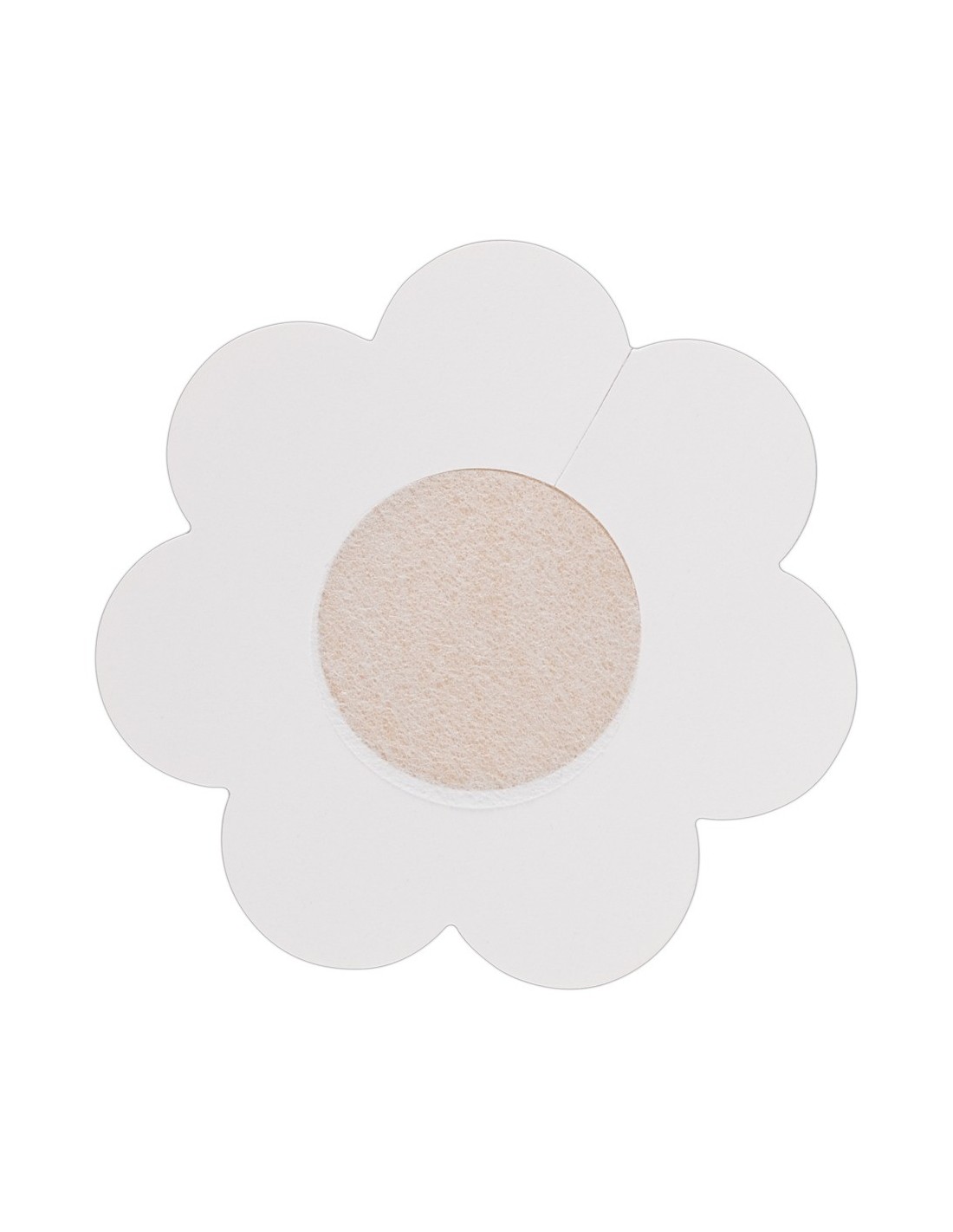 Softowe naklejki w kolorze skóry z powłoką samoprzylepną do przyklejania na sutkach. Wykonane z tkaniny i silikonu. Niezawodnie pokrywają również sztywne sutki i otoczkę. W kwiatowym kształcie, ? 7 cm. 6 par.