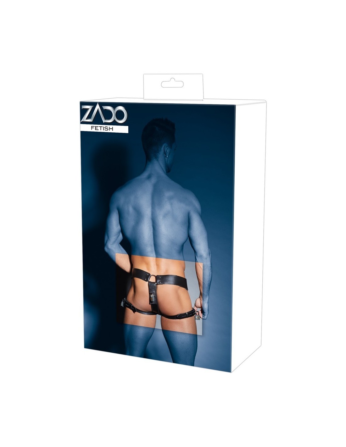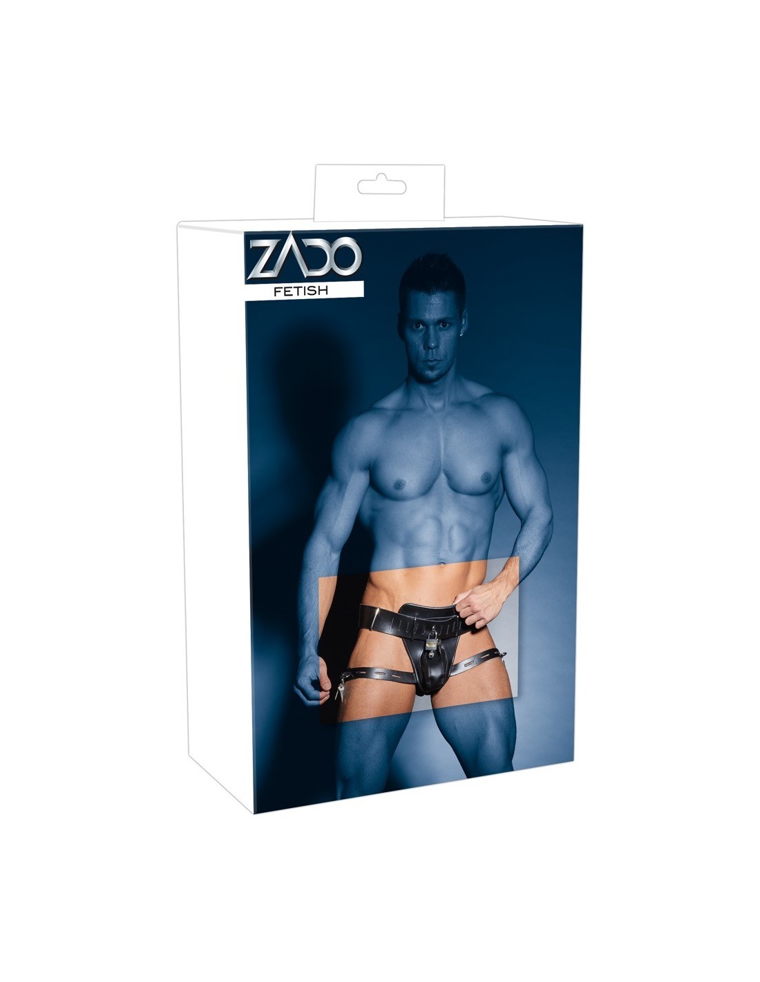 Skórzane stringi z klatką na penisa Leather Men's String L/XL