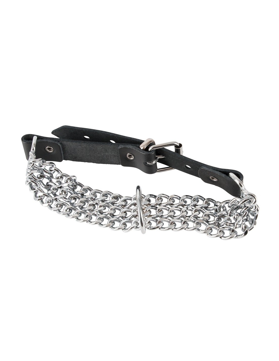 ZADO Leder Halsfessel Kette to nie tylko kołnierz - to symbol Twojej dominacji i władzy. Trzy metalowe łańcuchy, które zdobią ten kołnierz, dodają mu niezwykłego uroku i sprawiają, że staje się on jeszcze bardziej intrygujący. Środkowy pierścień pozwala na zamocowanie smyczy, co daje Ci pełną kontrolę nad swoim partnerem. Wyraź swoje pragnienia i podkreśl swoją dominację dzięki temu wyjątkowemu kołnierzowi.
