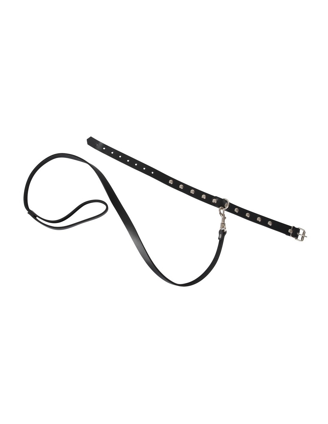 Crafted from premium, vegetable-tanned leather, this exquisite collar and leash set is designed to provide both comfort and durability. The narrow collar features an adjustable buckle closure, allowing you to find the perfect fit for your partner. Adorned with decorative studs, it adds a touch of elegance to your BDSM play.
