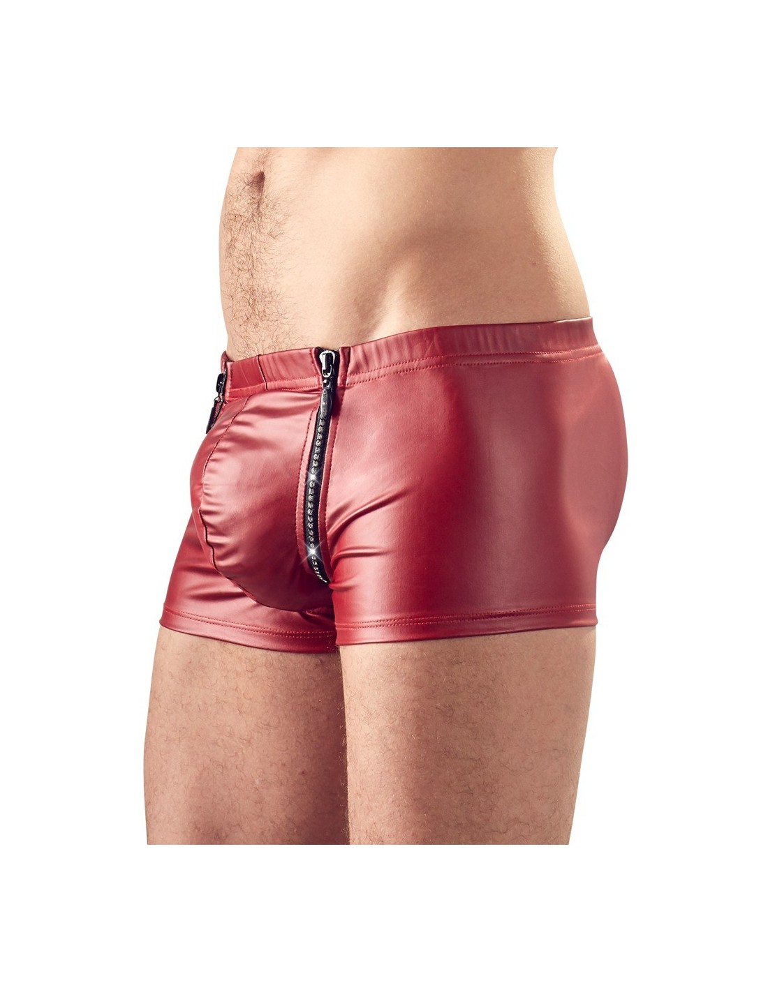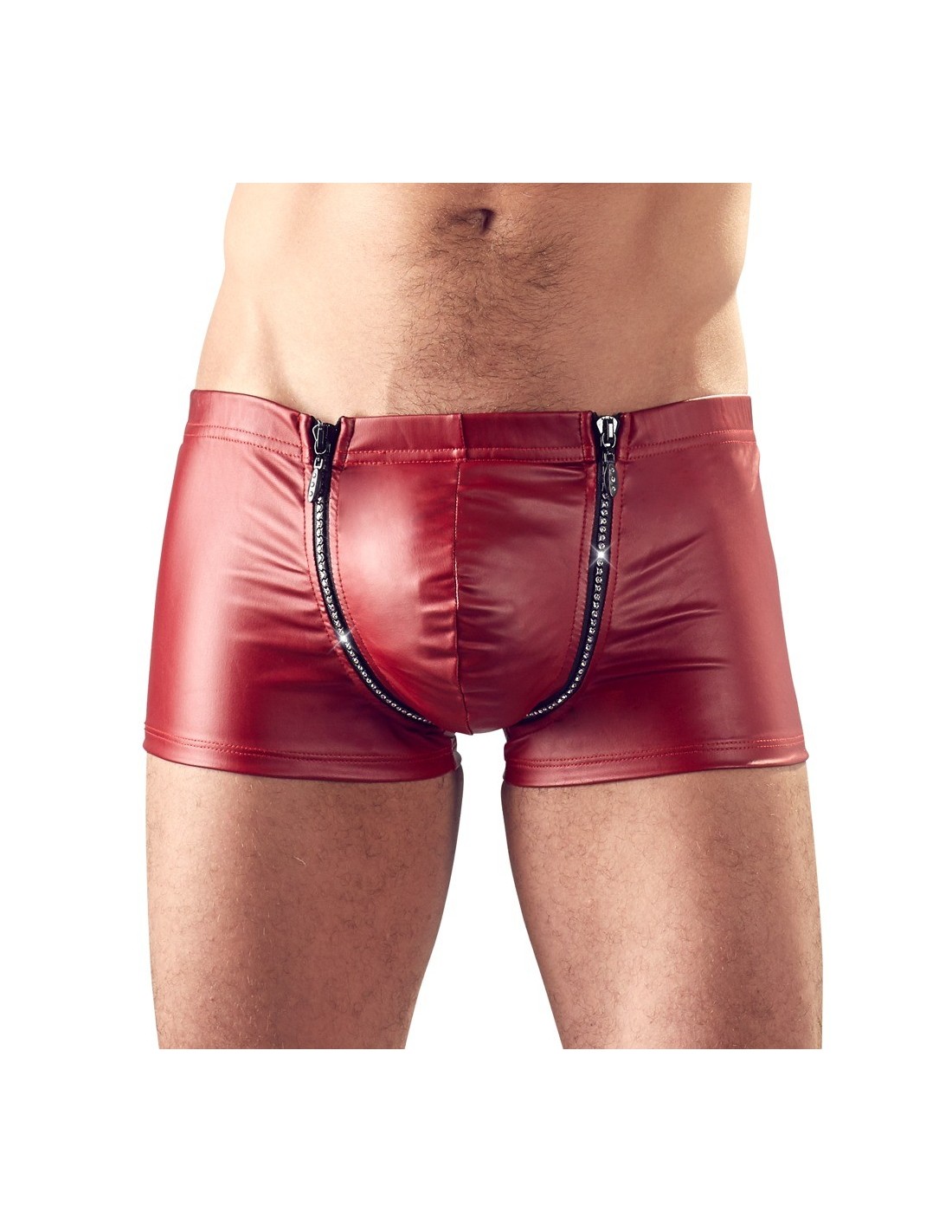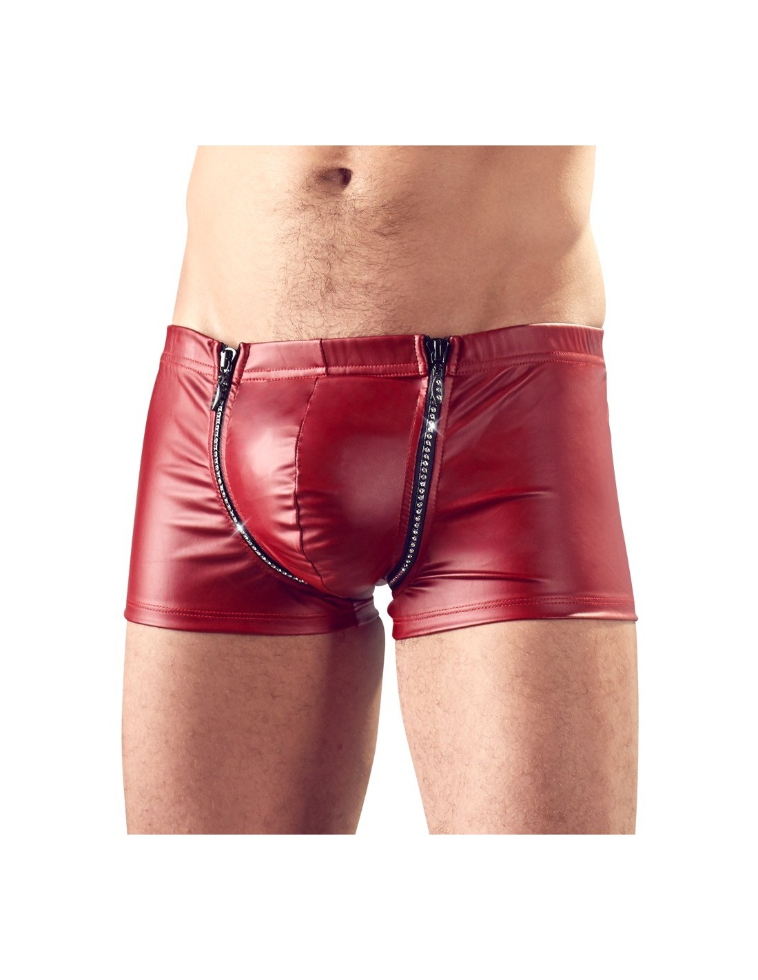 Erotyczne bokserki Red Men's Pants S zostały wykonane z wysokiej jakości materiałów, które nie tylko zapewniają komfort, ale także dodają stylu. Ich matowy look sprawia, że prezentują się nowocześnie i atrakcyjnie. Dodatkowo, zamki błyskawiczne w okolicy krocza są ozdobione cyrkoniami, które jeszcze bardziej podkreślają obszar krocza. Dzięki temu, Twoje intymne miejsca będą wyglądały jeszcze bardziej kusząco i intrygująco.