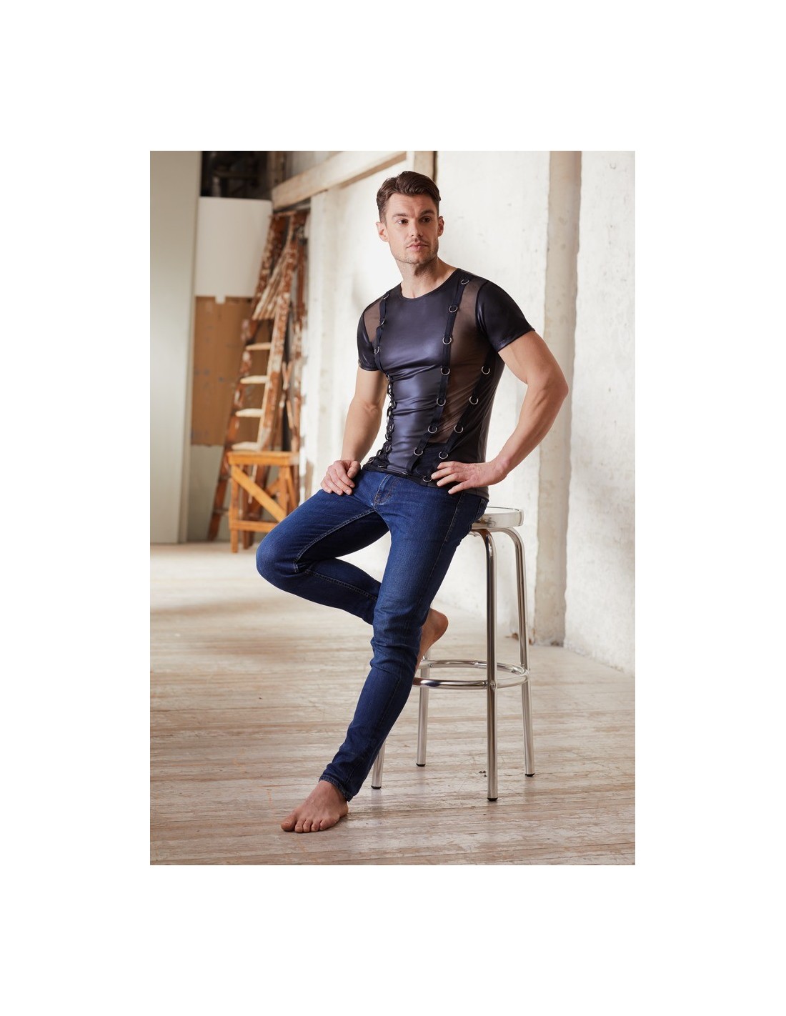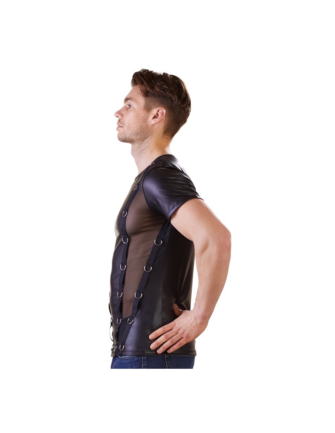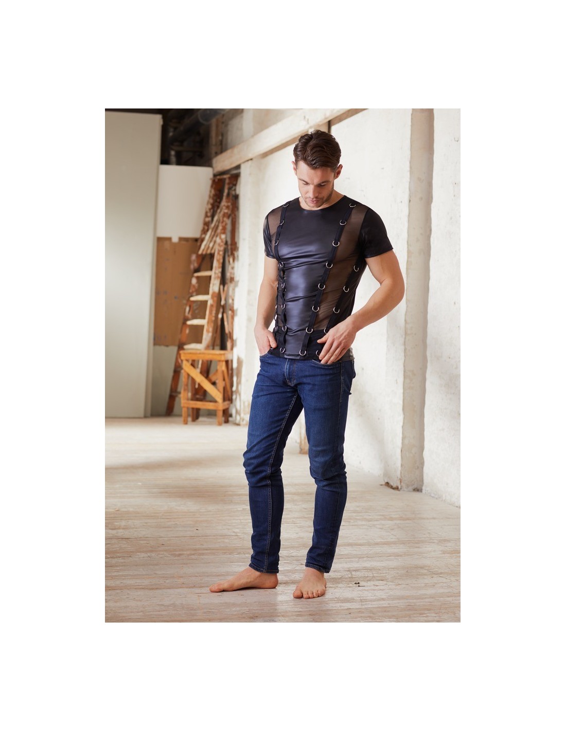 Wyobraź sobie, że stajesz przed lustrem. Twoje spojrzenie spoczywa na niezwykle kuszącej koszulce, która podkreśla Twoje atuty i dodaje pewności siebie. To właśnie Zdobiona koszulka Men's Shirt S - prawdziwa perełka wśród męskiej bielizny erotycznej.