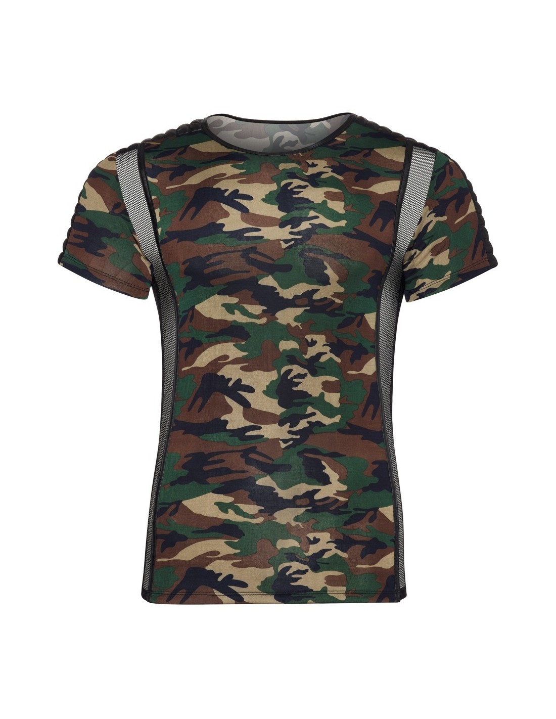 Nasza koszulka moro Men's Shirt S to połączenie stylowego kamuflażu z kuszącymi wstawkami siatkowymi po obu stronach. To połączenie sprawia, że ta koszula jest nie tylko atrakcyjna, ale także niezwykle zmysłowa. Dodatkowo, na ramionach i rękawach znajdują się zszyte kawałki pięknego czarnego matowego materiału, które nadają całości elegancji i wyjątkowego charakteru.